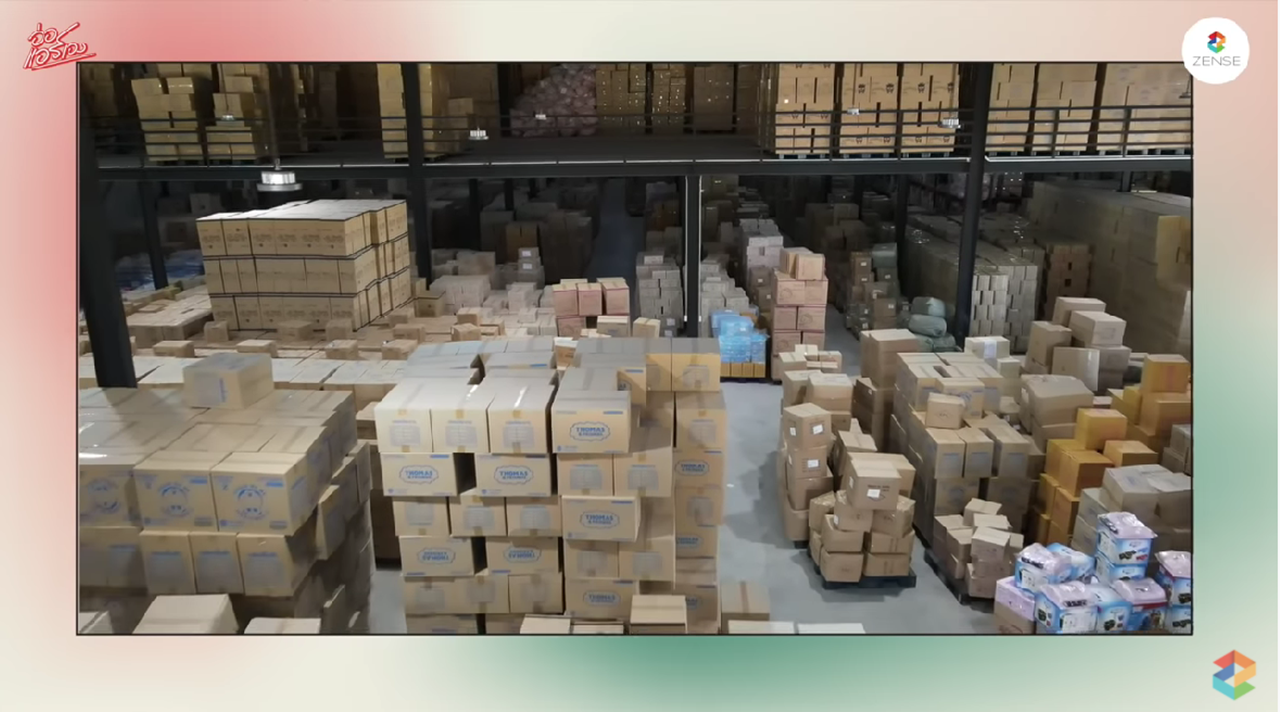 แอร์ ได้พาไปดูโกดังสินค้า เป็นธุรกิจ absoplus เกี่ยวกับการซื้อลิขสิทธิ์ตัวการ์ตูนต่างๆ เอามาทำเป็นผลิตภัณฑ์เครื่องใช้ ซึ่งมีสต๊อกสินค้ากว่า 120 ล้านอยู่ที่นี่ เป็นข้าวของเครื่องใช้จากการ์ตูนลิขสิทธิ์กว่า 1,000 รายการ แอร์ บอกว่า ธุรกิจอันนี้เป็นธุรกิจที่ตนเองไปขอหุ้นกับเค้า ซึ่งหุ้นส่วนเค้าทำมานานมาก และยอดเดือนนี้ก็อยู่ที่ 48 ล้าน