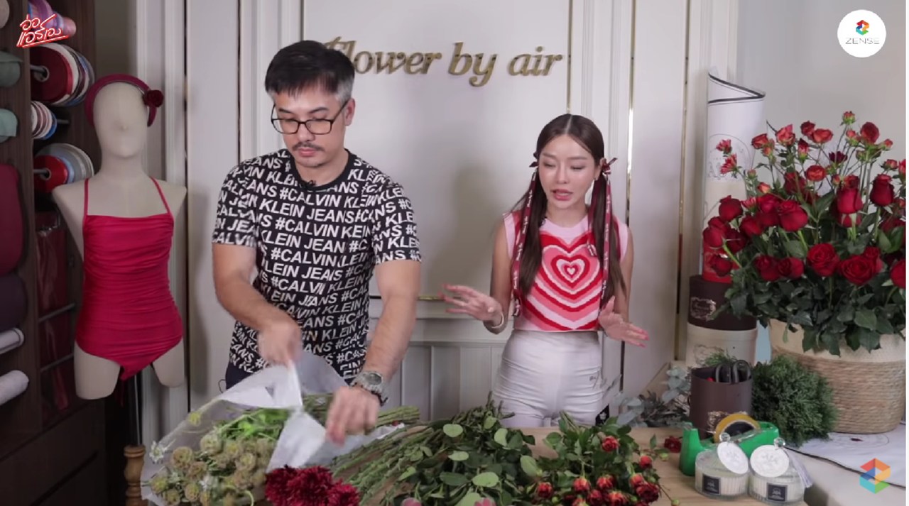 จากนั้น แอร์ ก็พาไปดูร้านดอกไม้ของตัวเอง Flower by air ที่เปิดมาแล้ว 10 ปี แอร์ บอกว่าการจัดดอกไม้เป็นงานที่รักมากกว่าการหวังผลกำไร ยิ่งช่วงวันวาเลนไทน์เป็นช่วงที่ไม่ได้นอนเลย เป็นช่วงที่เหนื่อยมากๆ ธุรกิจร้านดอกไม้ช่วง 2 ปีแรกเป็นช่วงที่ล้มลุกคลุกคลานสุดๆ ลองผิดลองถูกมานาน กระทั่งมีลูกค้าประจำแล้ว