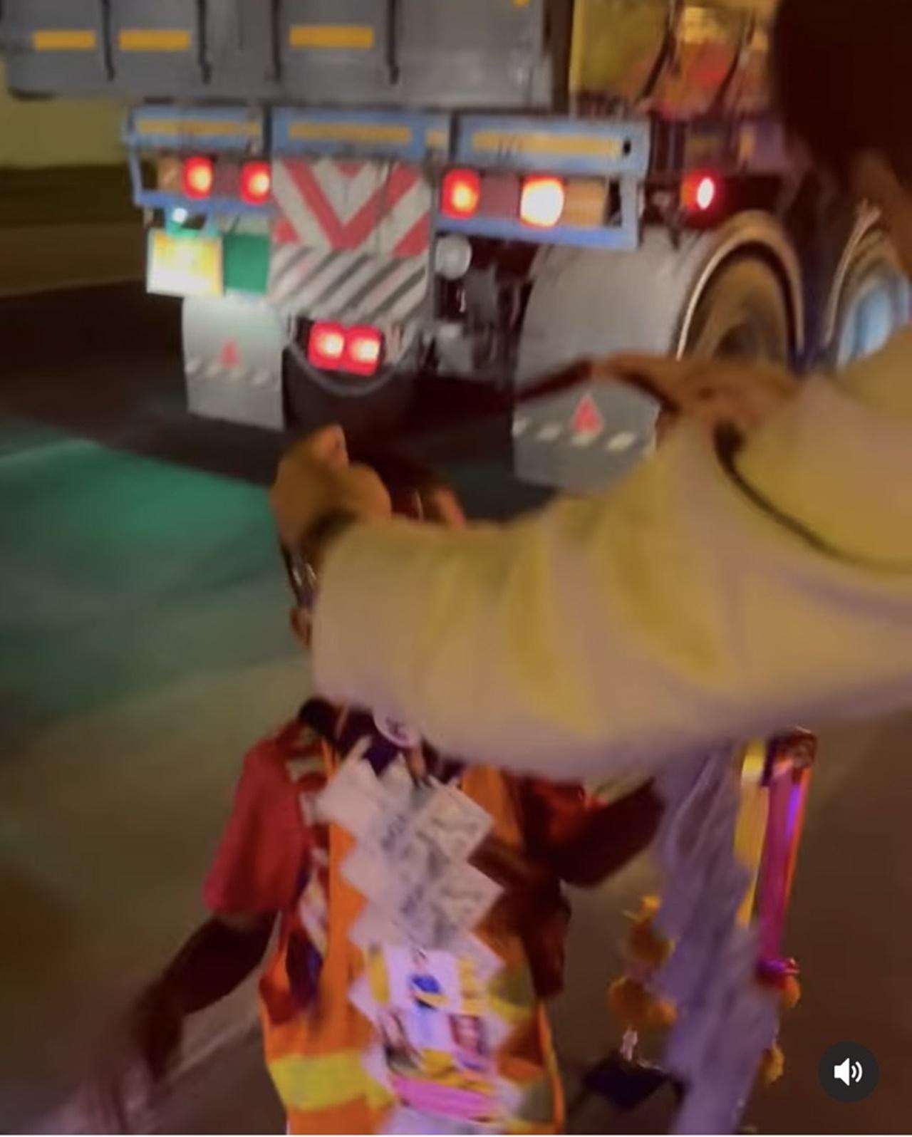 งานนี้ ก้อง รีบลุกไปเปิดกระจกแล้วหยิบพวงมาลัยเงินสดที่ได้จากการแสดง และเรียกเด็กผู้ชายคนดังกล่าวมา พร้อมกับยื่นพวงมาลัยเงินสดไปคล้องคอเด็กน้อย และพูดว่า "เป็นนักร้อง โคตรดังเลย แต่ตอนนี้ไม่ดังแล้ว" เด็กน้อยร้องตกใจเสียงดัง ถามกลับว่า "ห้ะ เดี๋ยวๆ เป็นดาราเหรอ" ก้อง บอกว่า "ใช่ พี่เป็นดาราน้อง พอดีได้เงินมาเลยเอามาให้"