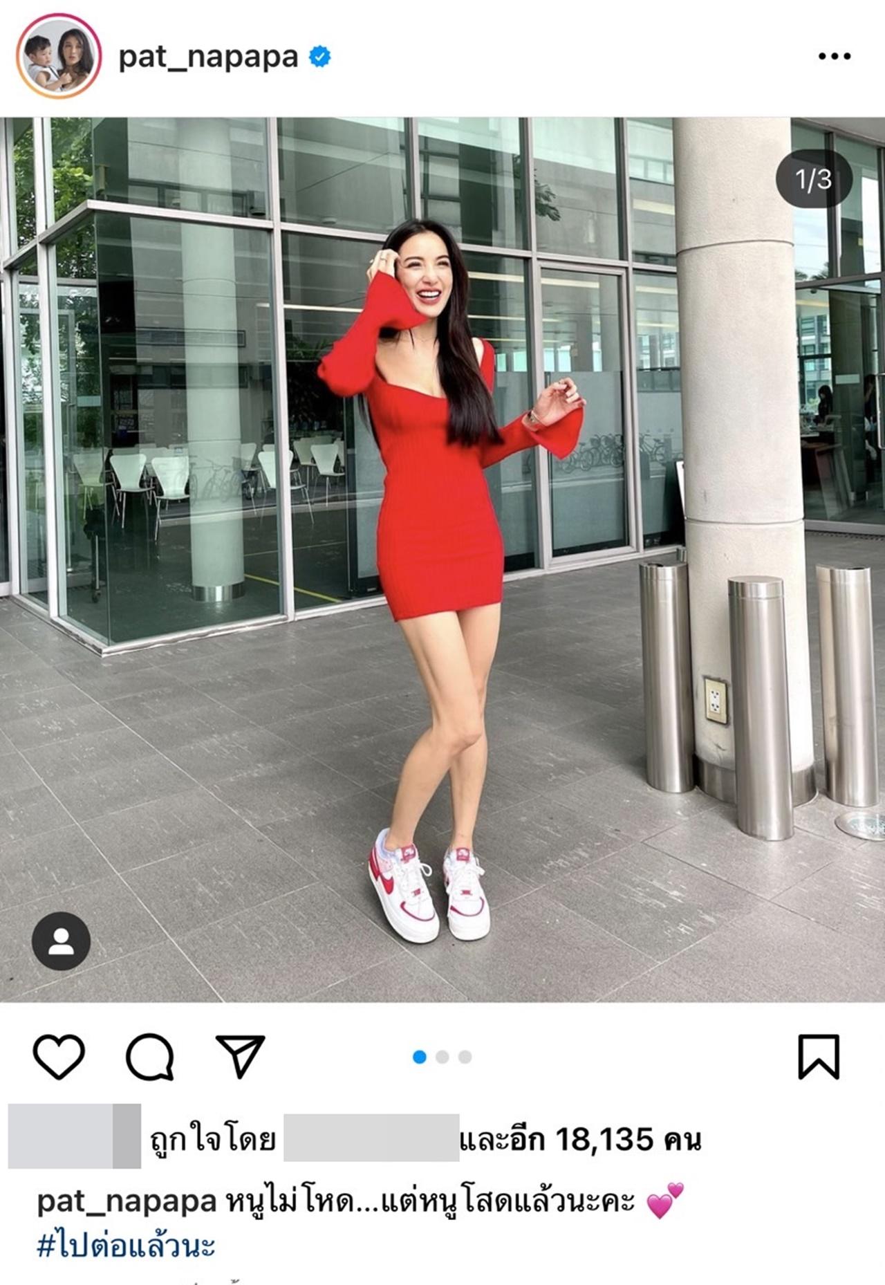 ในส่วนของสาว แพท ณปภา ก็ได้โพสต์รูปและแคปชั่นว่า "หนูไม่โหด…แต่หนูโสดแล้วนะคะ #ไปต่อแล้วนะ" และเมื่อไปส่องอินสตาแกรมของทั้งคู่พบว่า แพท และ นาย นั้นต่างอันฟอลโลว์กันเรียบร้อยแล้ว.
