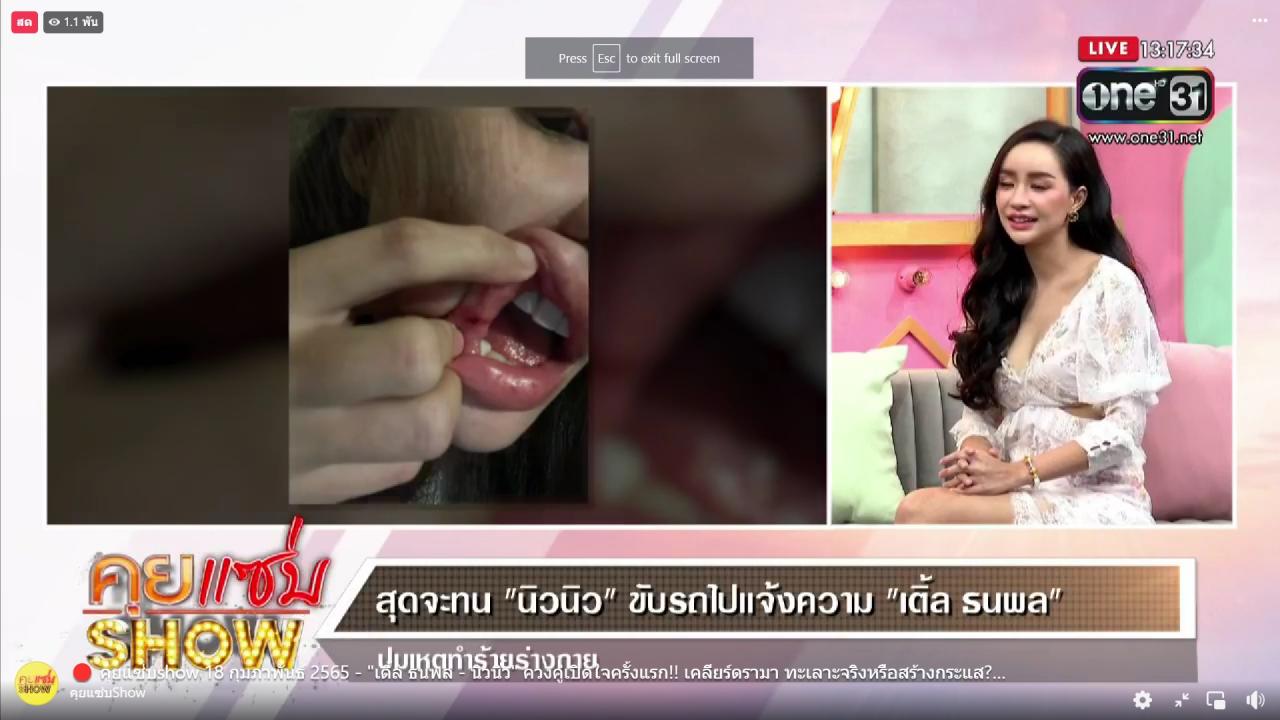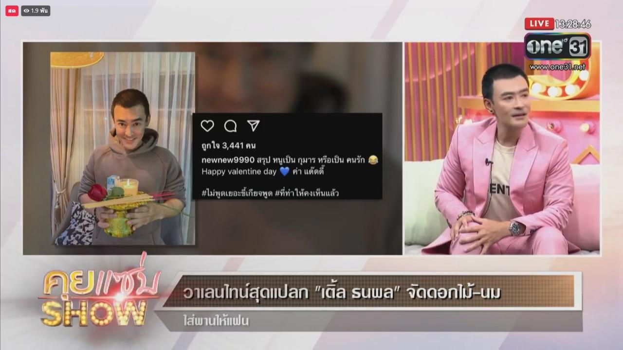 หลังจากคู่รักดังอย่างนักแสดงหนุ่ม เติ้ล ธนพล นิ่มทัยสุข และนางแบบสาวแซ่บ นิวนิว เอวเด้ง ตกเป็นประเด็นร้อนเมื่อเติ้ลทำร้ายร่างกายนิวนิวจนปากฉีก ต้องเย็บ 5 เข็ม หัวแตก มีรอยช้ำตามตัว ก่อนที่ทั้งคู่จะออกโรงเคลียร์ใจกลางรายการดัง และเติ้ลเผยว่าตัวเองเป็นโรคซึมเศร้า ล่าสุด เติ้ล-นิวนิว ควงคู่มาร่วมรายการ “คุยแซ่บ Show” ทางช่องวัน 31 ถึงเรื่องที่เกิดขึ้น รวมไปถึงเรื่องราววันวาเลนไทน์ของทั้งคู่ที่ฮาหนักมาก เมื่อเติ้ลเอาดอกไม้ ธูป เทียน และนมใส่พานมาให้นิวนิว รวมถึงคลิปที่ทำเอาหลายคนมีตาค้าง กับลุคสุดเซ็กซี่ของนิวนิวในชุดลูกไม้สีขาว
