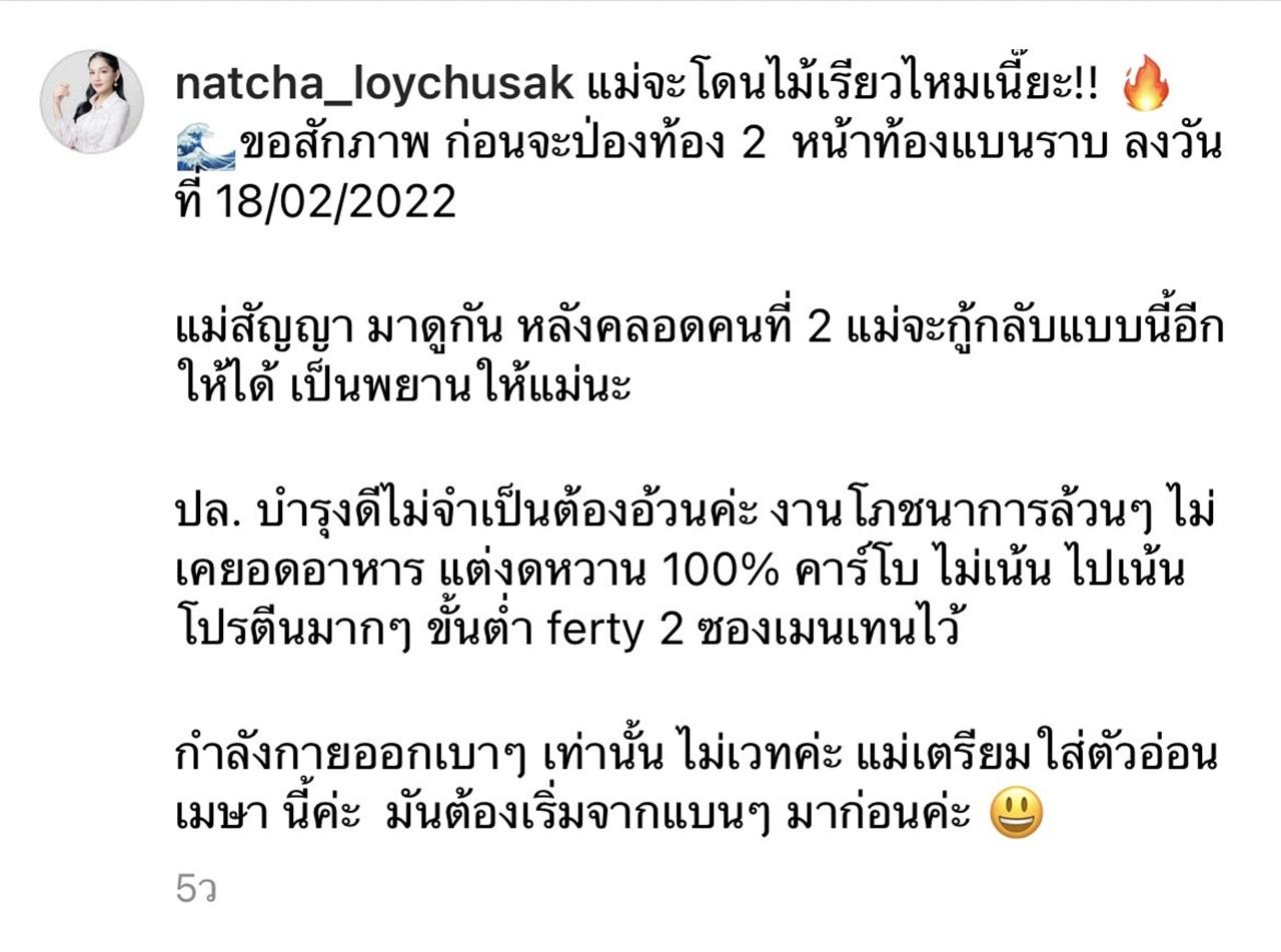 ปล. บำรุงดีไม่จำเป็นต้องอ้วนค่ะ งานโภชนาการล้วนๆ ไม่เคยอดอาหาร แต่งดหวาน 100% คาร์โบ ไม่เน้น ไปเน้นโปรตีนมากๆ ขั้นต่ำ ferty 2 ซองเมนเทนไว้ กำลังกายออกเบาๆ เท่านั้น ไม่เวทค่ะ แม่เตรียมใส่ตัวอ่อน เมษา นี้ค่ะ มันต้องเริ่มจากแบนๆ มาก่อนค่ะ"