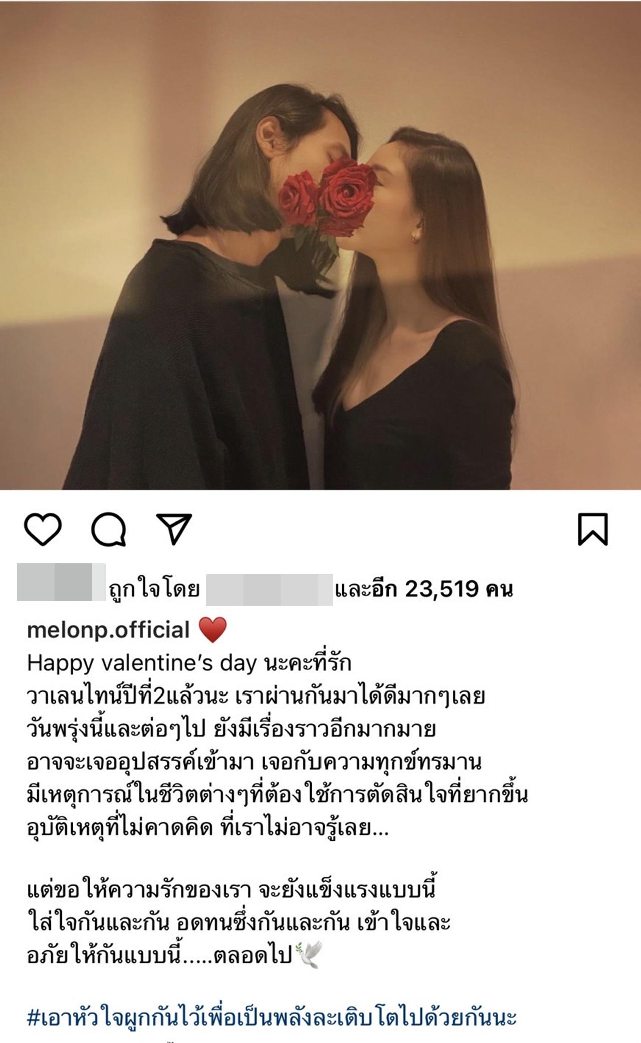 13. เมื่อวาเลนไทน์ที่ผ่านมา แตงโม ก็ได้โพสต์ภาพกับแฟนหนุ่ม พร้อมเขียนข้อความสุดซึ้งถึง เบิร์ด พร้อมติดแท็กหา โดยบอกว่า ขอให้ความรักของเรา จะยังแข็งแรงแบบนี้ ใส่ใจกันและกัน อดทนซึ่งกันและกัน เข้าใจและอภัยให้กันแบบนี้ตลอดไป