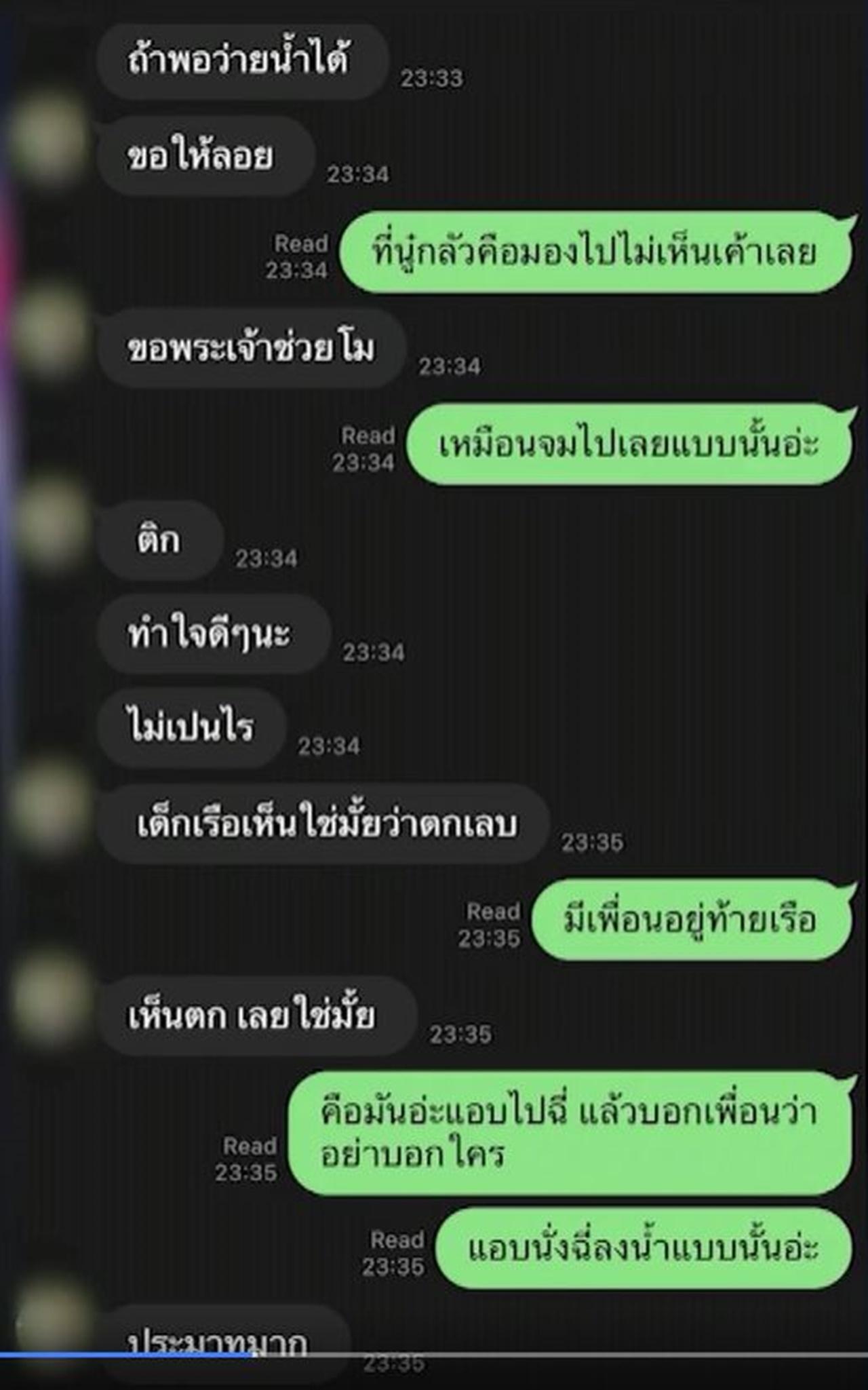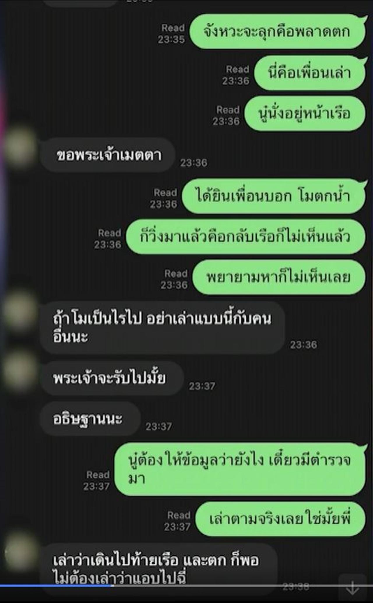 ส่วนผมติดต่อท่าเรือ บอกให้เบียร์เอาเรือออกเดี๋ยวนี้ เพื่อนพี่ตกน้ำ เบียร์มาพร้อมกับบอล ตอนนั้นมีเจ็ตสกีของทีมอีก 1 ลำ เจ็ตสกีช่วยวนด้วย