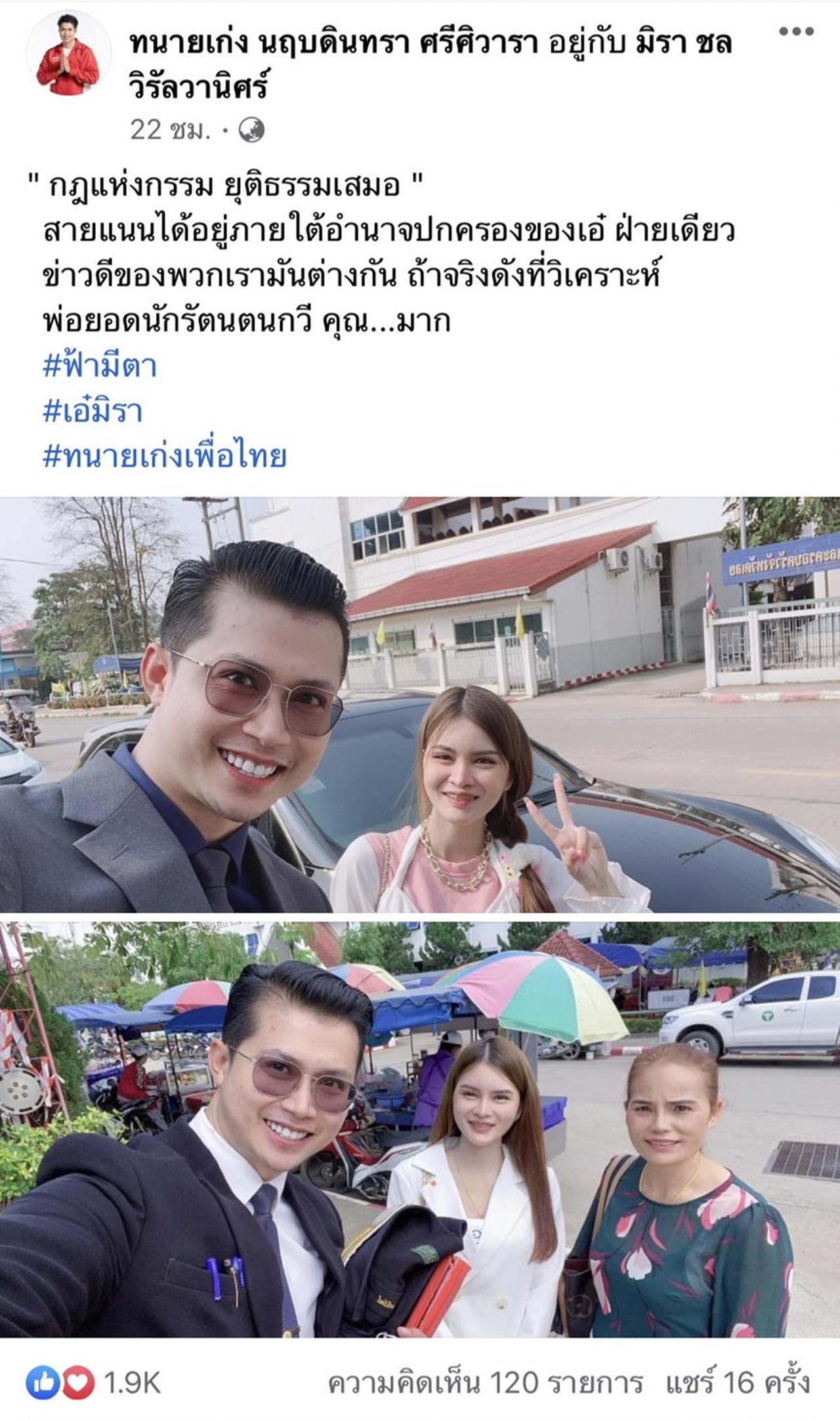 หลังจากที่ดำเนินการมาระยะหนึ่ง ล่าสุด ทนายเก่ง ก็ได้โพสต์รูปกับ เอ๋ มิรา พร้อมกับข้อความว่า "กฎแห่งกรรม ยุติธรรมเสมอ" สายแนนได้อยู่ภายใต้อำนาจปกครองของเอ๋ ฝ่ายเดียว ข่าวดีของพวกเรามันต่างกัน ถ้าจริงดังที่วิเคราะห์ พ่อยอดนักรัตนตนกวี คุณ...มาก #ฟ้ามีตา #เอ๋มิรา #ทนายเก่งเพื่อไทย"