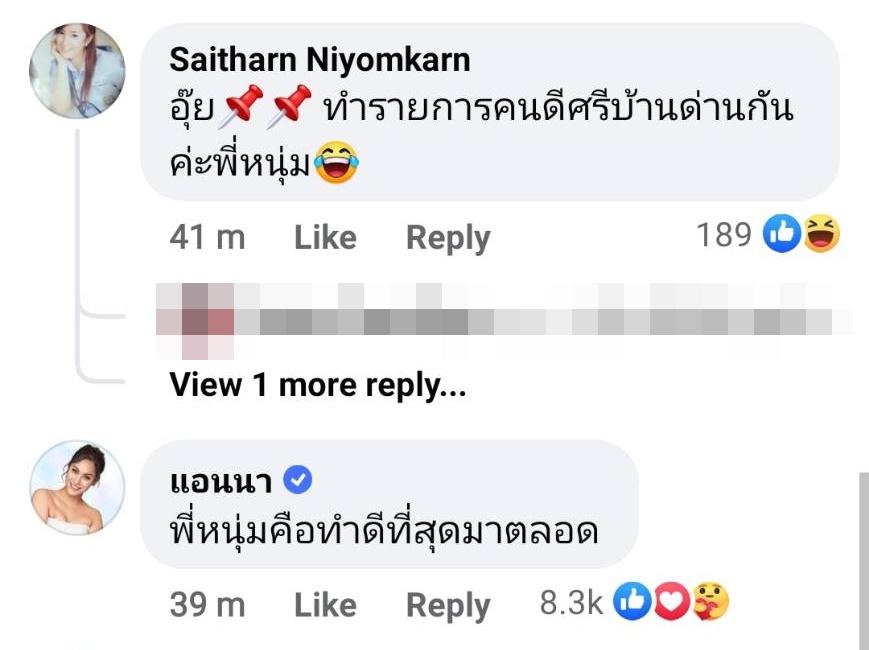 ท่ามกลางคอมเมนต์จากแฟนๆ รวมถึงคนดังหลายคนที่แสดงความคิดเห็นและให้กำลังใจ อาทิ เบ๊น อาปาเช่ “(อีโมจิชูสองนิ้ว) ลูกเพ่”, ก้อง ห้วยไร่ ส่งอีโมจิยิ้มและชูสองนิ้ว, ไอซ์-แบงค์ “คุมมมมพ๊อออออออ!!!! #เสียงกระติก”, กิ๊ฟ วรรธนะ “พี่หนุ่มต้องไม่เหมือนใครครับ แพะในฝูงหมา”, ต่าย สายธาร “ อุ๊ย (อีโมจิปักหมุด) ทำรายการคนดีศรีบ้านด่านกันค่ะพี่หนุ่ม”, แอนนา “พี่หนุ่มคือทำดีที่สุดมาตลอด” ฯลฯ