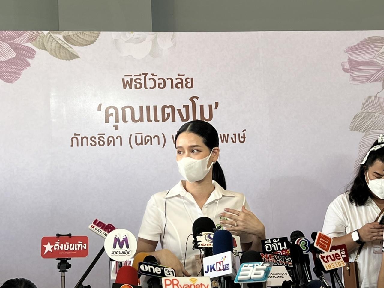 “หนูขอพูดแทนพี่เบิร์ดเลย พี่เบิร์ดไม่ได้ไม่อยากคุยกับพี่ๆ นะ แต่สภาพจิตใจเขายังไม่ได้ เขายังไม่ไหว ทุกครั้งที่มา อย่างเวลาวันนี้ที่พี่เบิร์ดมา เขาก็รอโมในรถแล้วโทรหาว่าโมอยู่ไหนแล้ว มารับพี่เข้างานหน่อย พี่ๆ ทุกคนก็เลยเห็นนี่ (ชี้ที่ตัวเอง) วิ่งจูงพี่เบิร์ดตลอดเวลา คือเขายังทำใจไม่ได้ การที่เขาจะพูดถึงพี่โมคือพูดไม่รู้เรื่อง ยังรับสภาพอะไรต่างๆ ไม่ได้ ยังรักและคิดถึง วันนี้พี่เบิร์ดไม่ได้ขึ้นพูดค่ะ พี่เบิร์ดอยู่ทีมโม เดี๋ยวโมจะให้สแตนด์บายข้างเวทีเผื่อคุณแม่เรียก เผื่อแขกทางคุณพ่อคุณแม่เรียก”