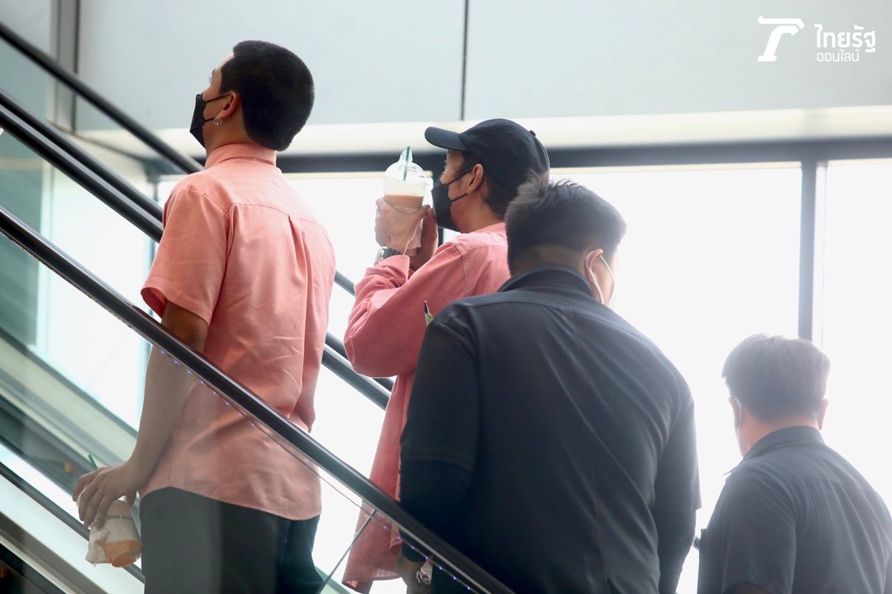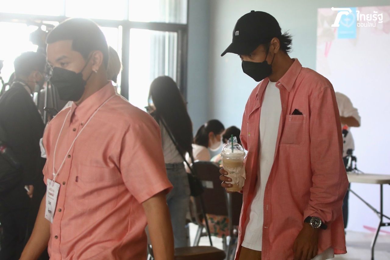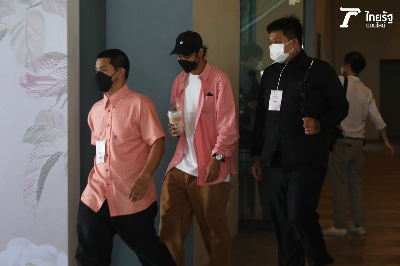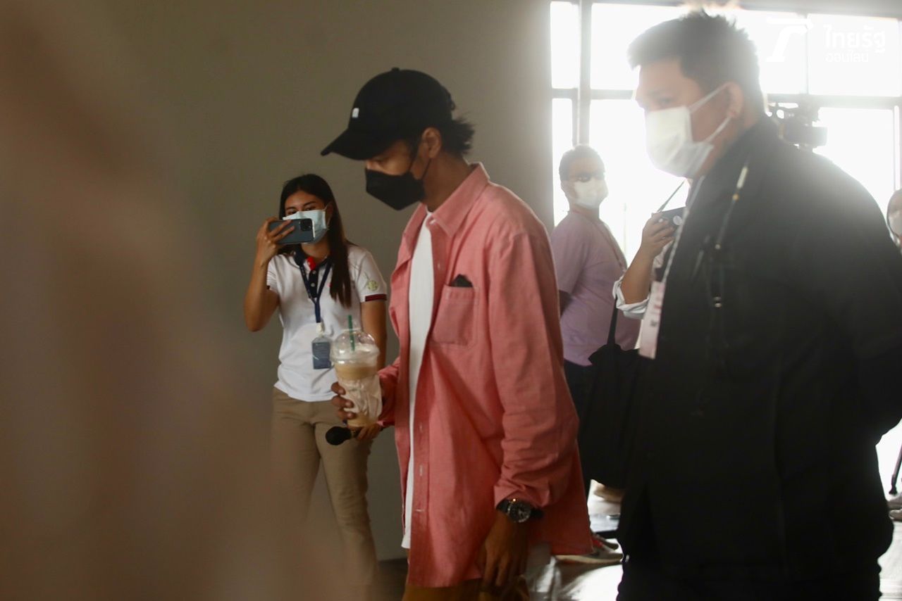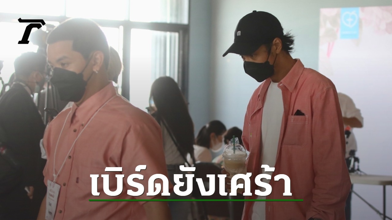 ในวันนี้ (12 มี.ค.65) เบิร์ดแต่งกายด้วยเสื้อเชิ้ตสีชมพูคลุมทับเสื้อยืดสีขาว ใส่กางเกงสีน้ำตาลและหมวกสีดำ พร้อมกับถือแก้วกาแฟเข้ามาที่งาน โดยมีทีมงานตามประกบอย่างใกล้ชิด