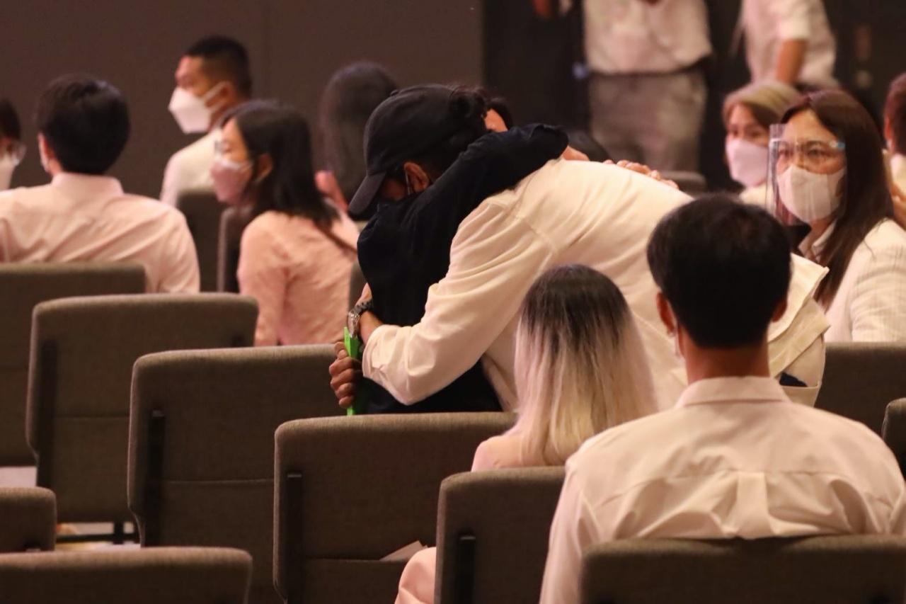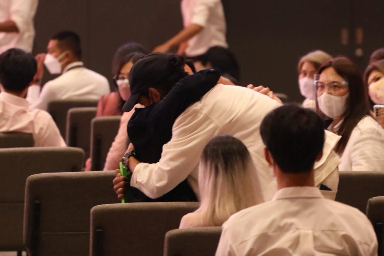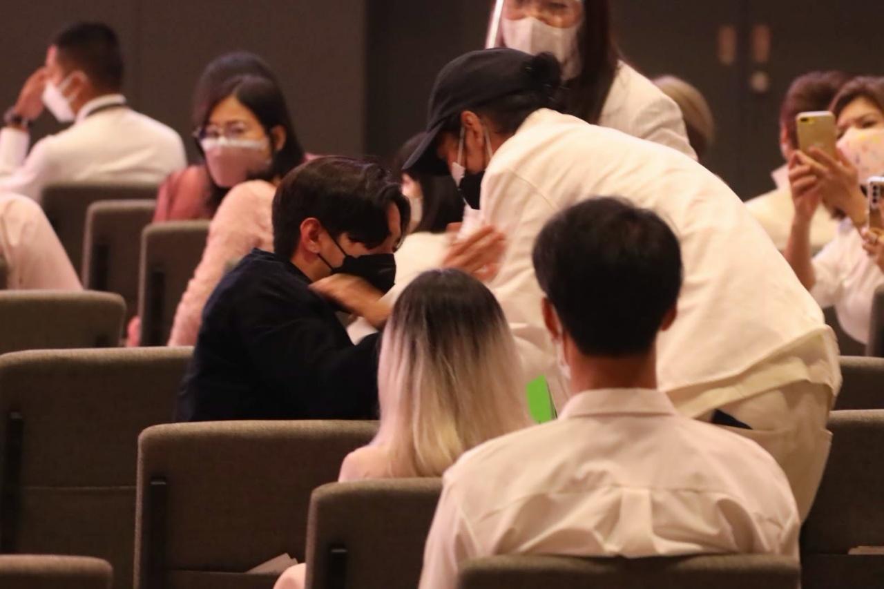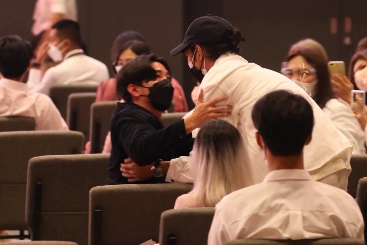 ส่วน เบิร์ด แฟนหนุ่มของ แตงโม ได้นั่งอยู่กับเพื่อนที่ด้านหลัง จากนั้นเมื่อช่วงใกล้เสร็จพิธี เบิร์ด ได้ลุกขึ้นและเดินไปกอดคอทักทาย โตโน่ ซึ่งทั้งสองทักทายและกอดคอกันในระยะเวลาหนึ่ง ก่อนที่ โตโน่ จะตบไหล่เพื่อให้กำลังใจกับ เบิร์ด ก่อนที่ เบิร์ด จะไหว้ขอบคุณและเดินออกจากงานไป.