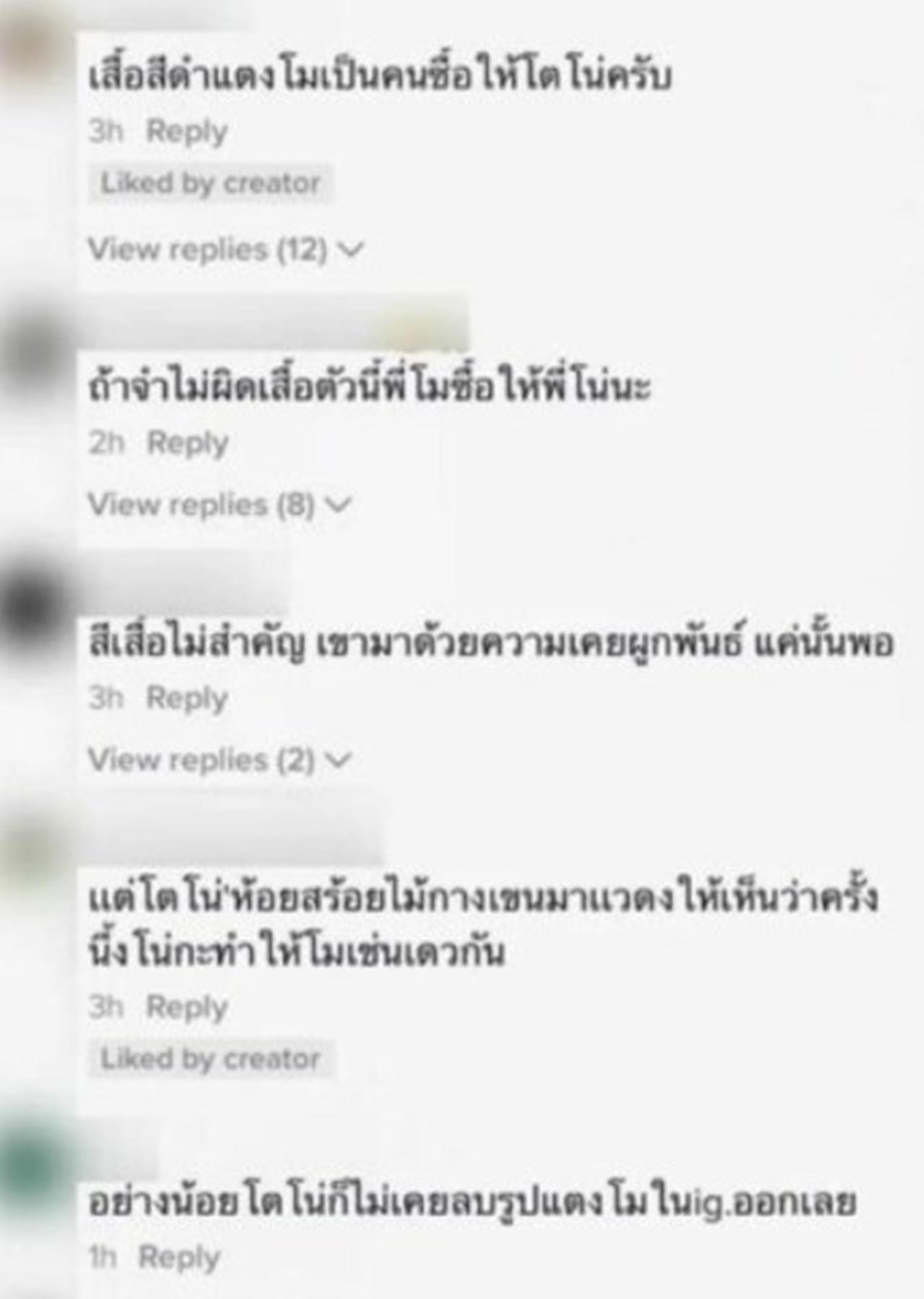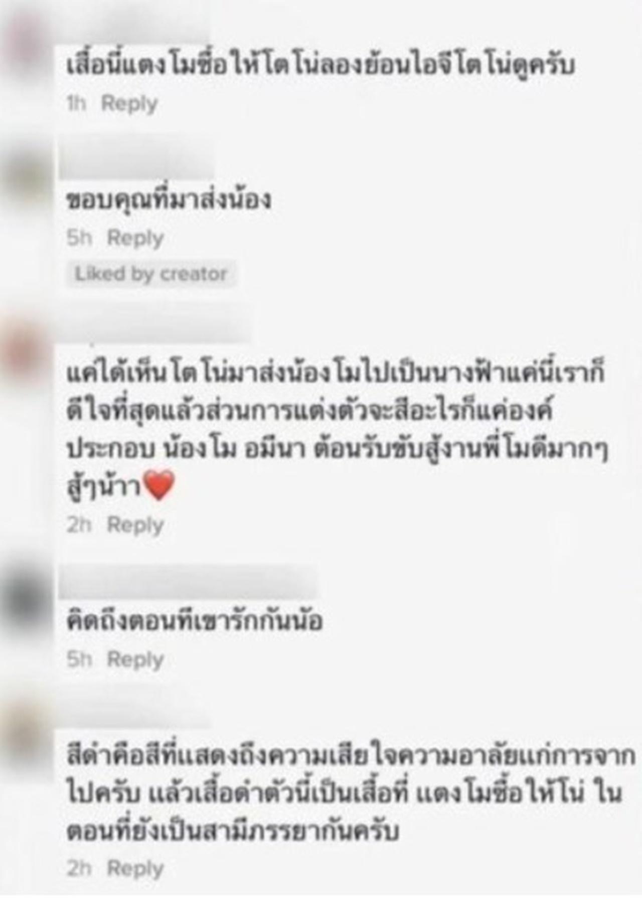 ซึ่งหลายคนก็ได้เข้ามาคอมเมนต์บอกว่า ที่ โตโน่ สวมชุดสูทสีดำมาเป็นเสื้อที่ แตงโม เป็นคนซื้อให้โตโน่, เสื้อนี้แตงโมซื้อให้โตโน่ลองย้อนไอจีโตโน่ดู, สีดำคือสีที่แสดงถึงความเสียใจความอาลัยแก่การจากไป แล้วเสื้อดำตัวนี้เป็นเสื้อที่แตงโมซื้อให้โน่ในตอนที่ยังเป็นสามีภรรยากัน, เสื้อกับสร้อยแตงโมเคยซื้อให้