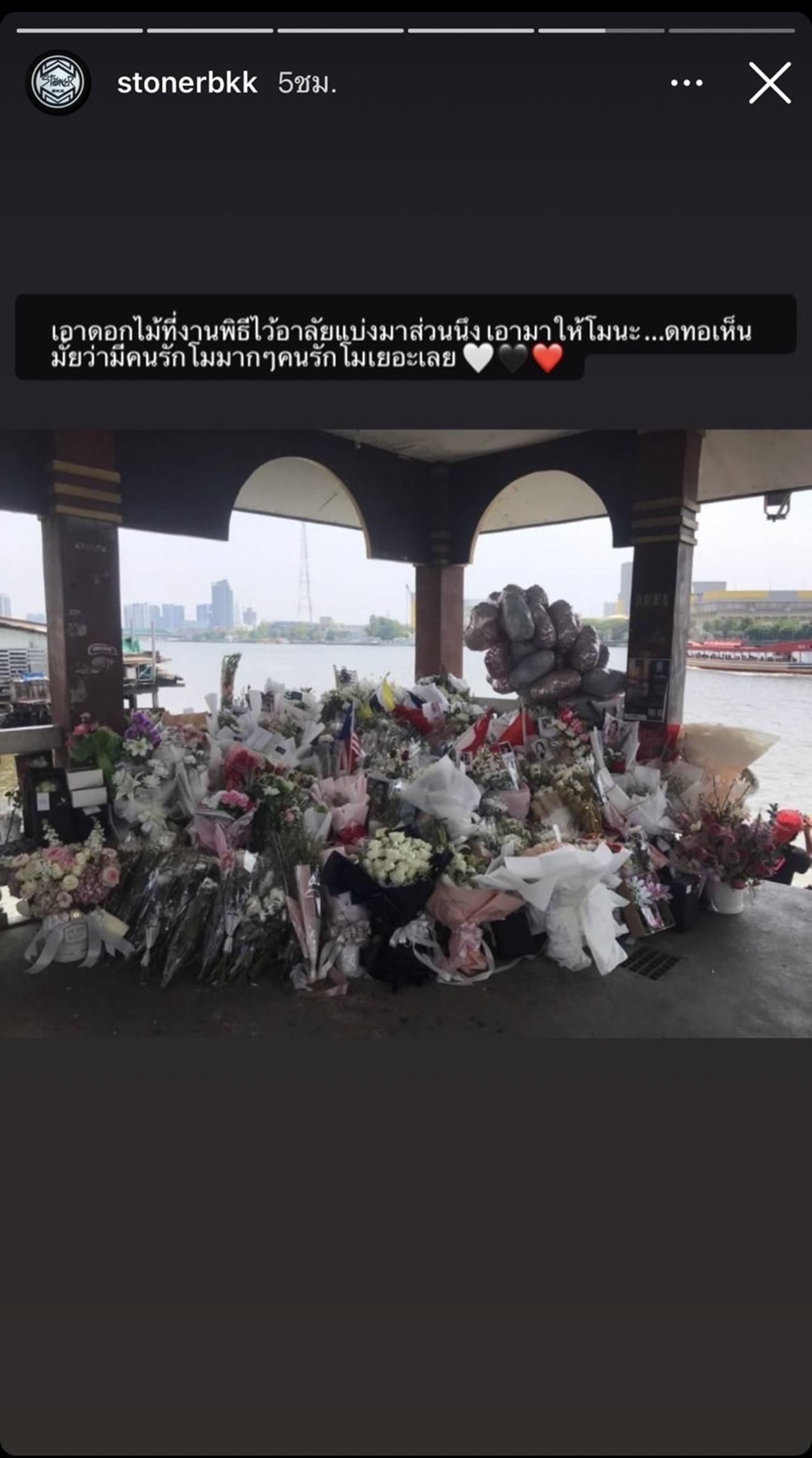 หลังจากพิธีไว้อาลัยของ แตงโม นิดา จบลง วันนี้ (14 มี.ค.) เบิร์ด ก็ได้ตั้งใจเอาช่อดอกไม้ส่วนหนึ่งจากงานพิธีไว้อาลัย มาให้ แตงโม นิดา ที่ท่าเรือ ณ จุดเกิดเหตุ โดยเจ้าตัวได้โพสต์ไอจีสตอรี่ เป็นรูปกองช่อดอกไม้ ที่ตั้งใจเอามาให้แฟนสาว พร้อมกับเขียนข้อความว่า
