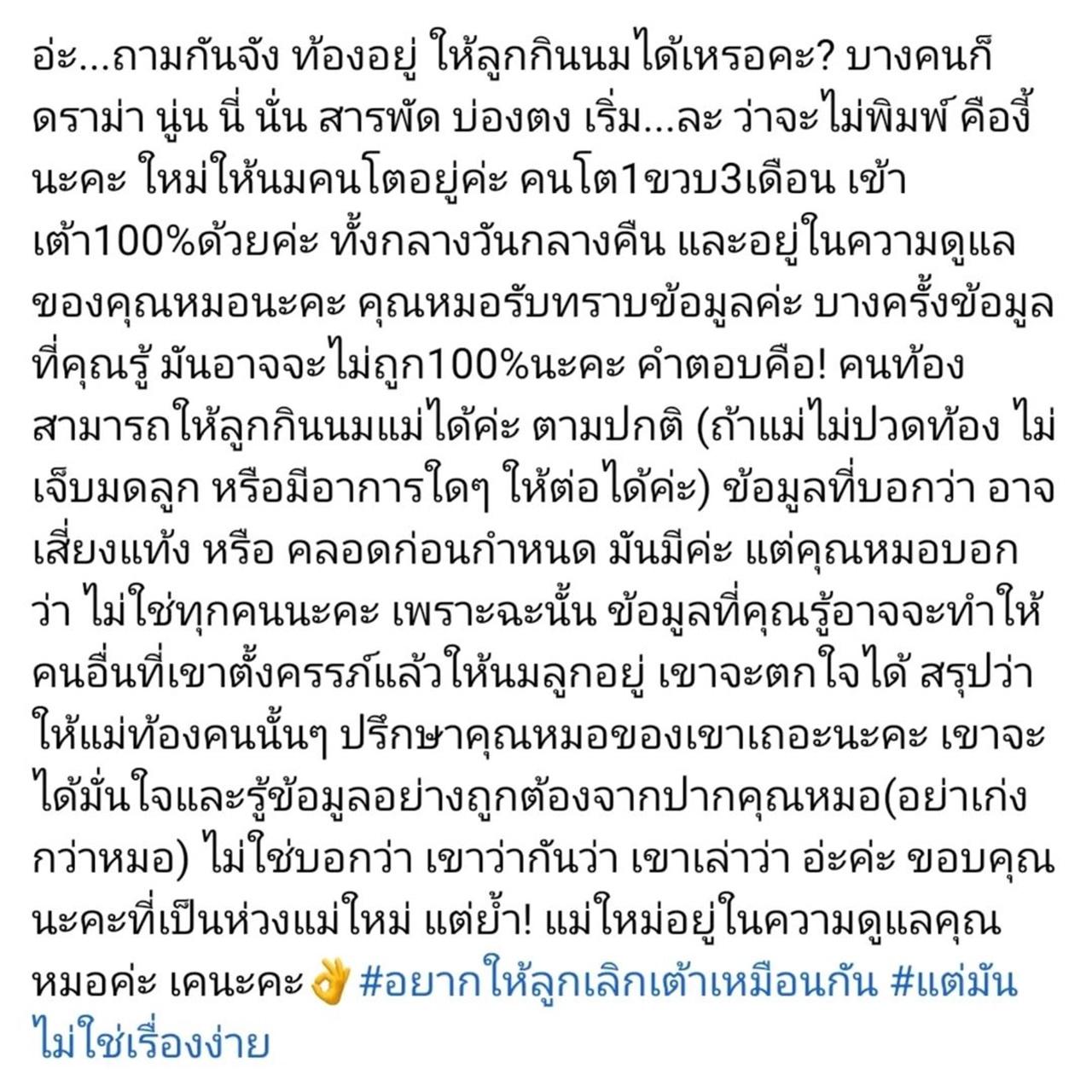 ขอบคุณนะคะที่เป็นห่วงแม่ใหม่ แต่ย้ำ! แม่ใหม่อยู่ในความดูแลคุณหมอค่ะ เคนะคะ #อยากให้ลูกเลิกเต้าเหมือนกัน #แต่มันไม่ใช่เรื่องง่าย”