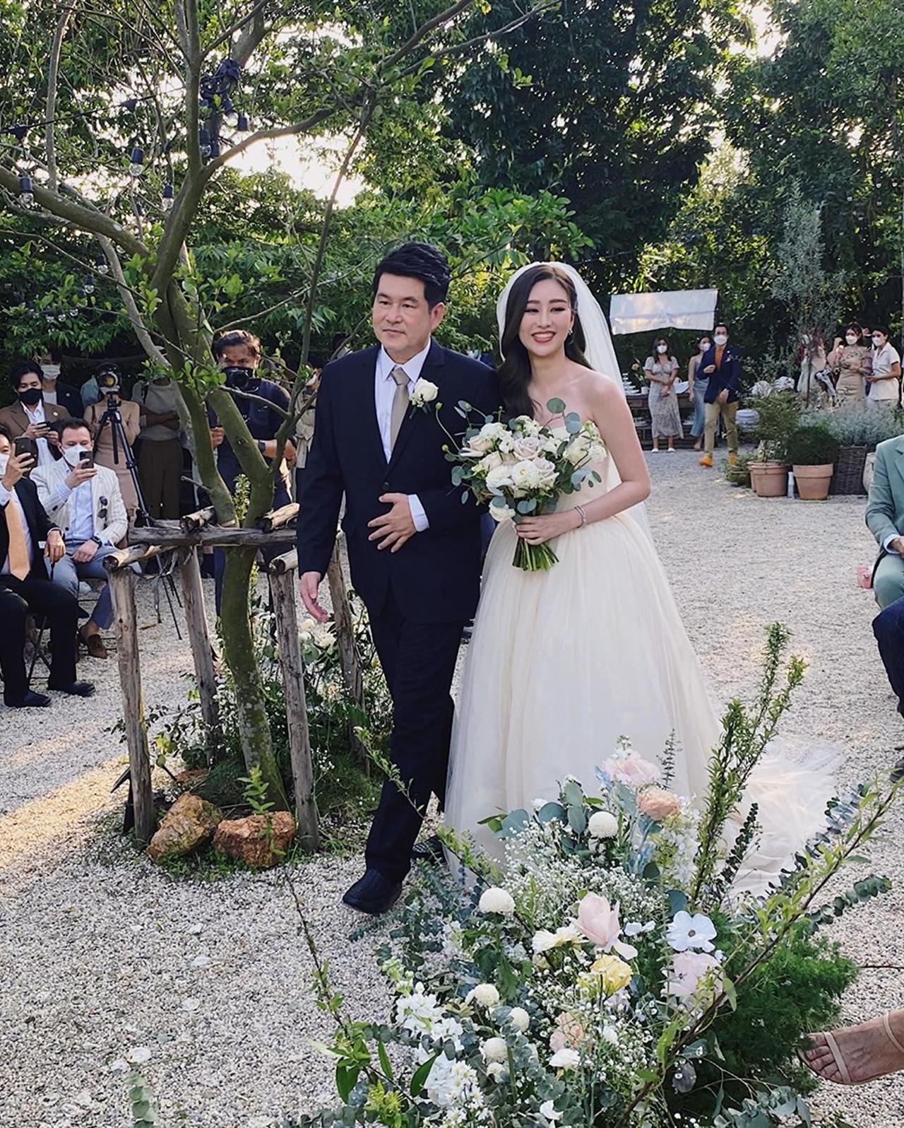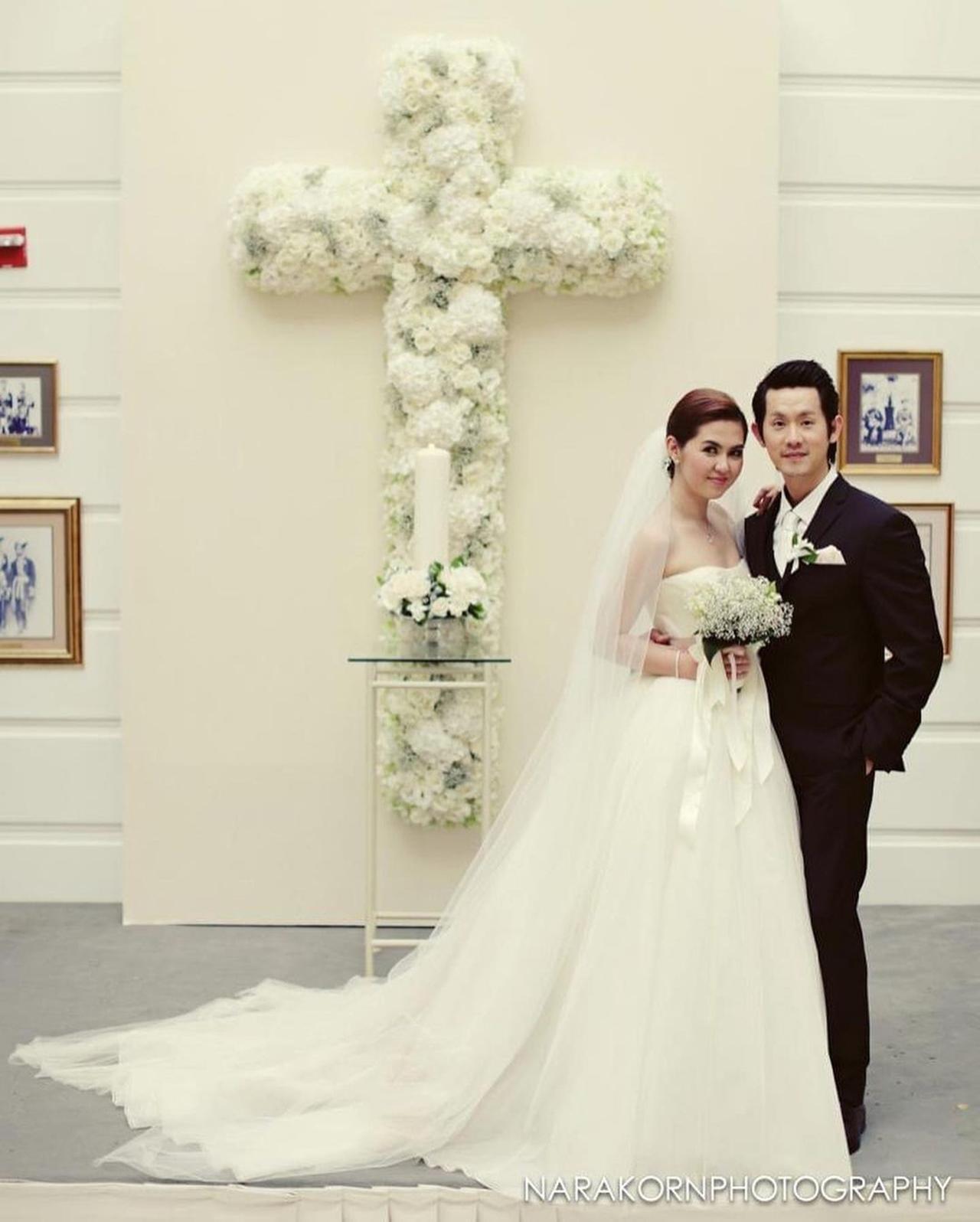 "It's not just a dress, it's a tradition. ชุดแต่งงาน Vera Wang ชุดนี้ เมื่อสิบปีที่แล้วจ๋าใส่ในงานแต่งงานของตัวเอง พ่อเป็นคนพาจ๋าเดินเข้าพิธีมาเพื่อส่งให้พี่เปิ้ล ปีนี้น้องแพตตี้ใส่ชุดเดียวกันนี้เดินเข้างานมากับคุณพ่อเพื่อมาส่งให้พี่เจ็ท