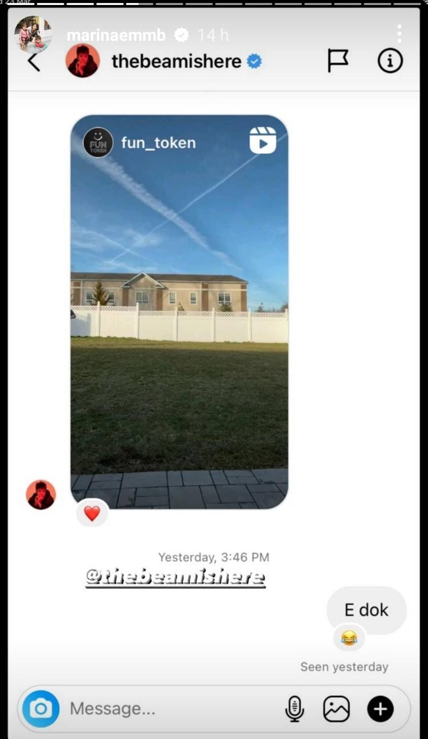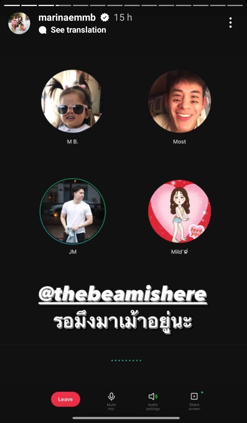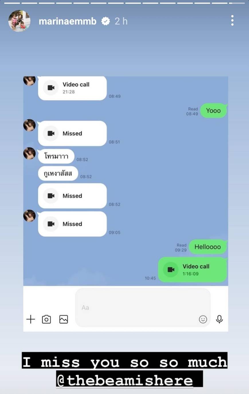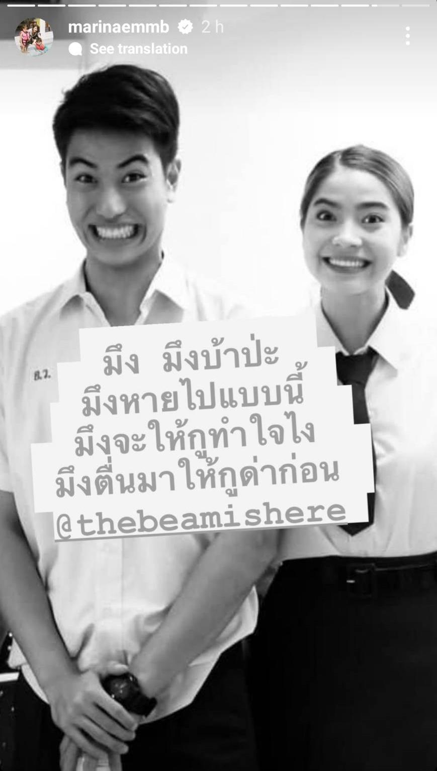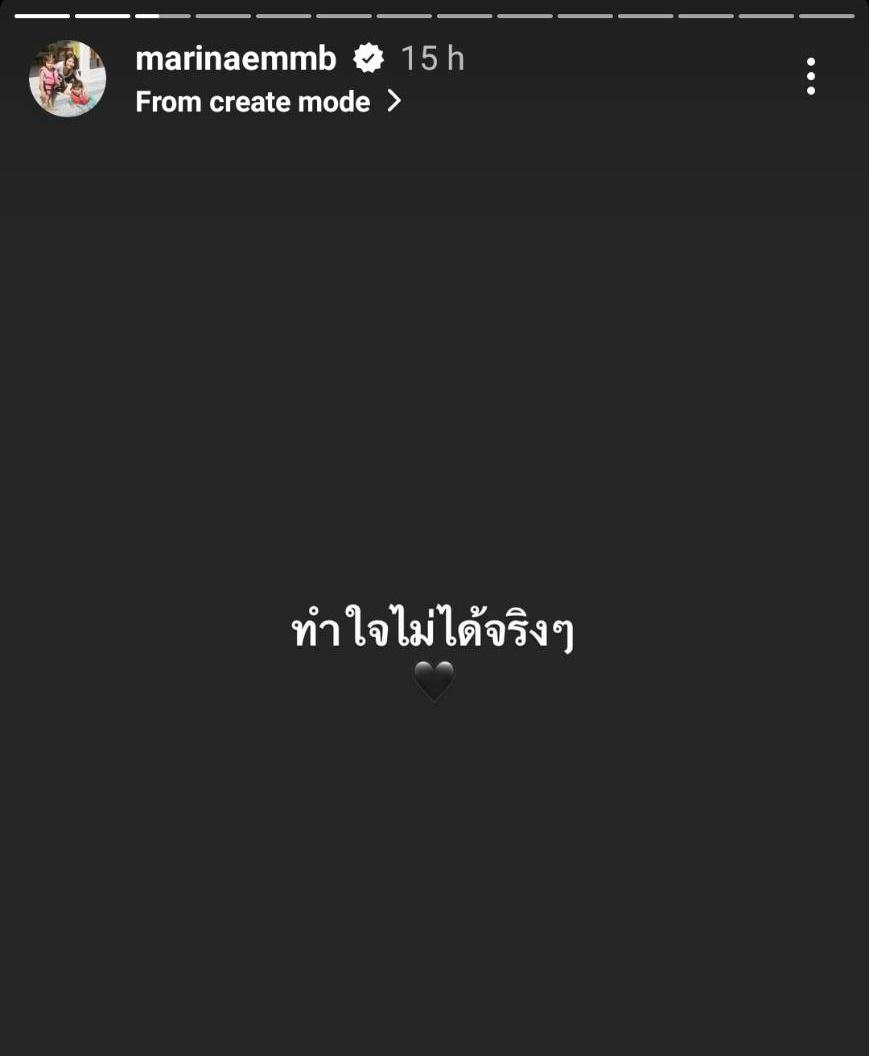 นอกจากนี้ในไอจีสตอรี่ของมารีน่าก็ได้โพสต์ข้อความเศร้าว่า “ทำใจไม่ได้จริงๆ” และใส่อีโมจิหัวใจสีดำ ก่อนจะโพสต์ทั้งภาพและคลิป รวมถึงภาพไลน์แชตสนทนาที่คุยกับบีม พร้อมทั้งเขียนข้อความต่างๆ และแท็กไอจีของบีม โดยมีเพื่อนๆ รวมถึงแฟนๆ ร่วมแสดงความเสียใจเป็นจำนวนมาก.