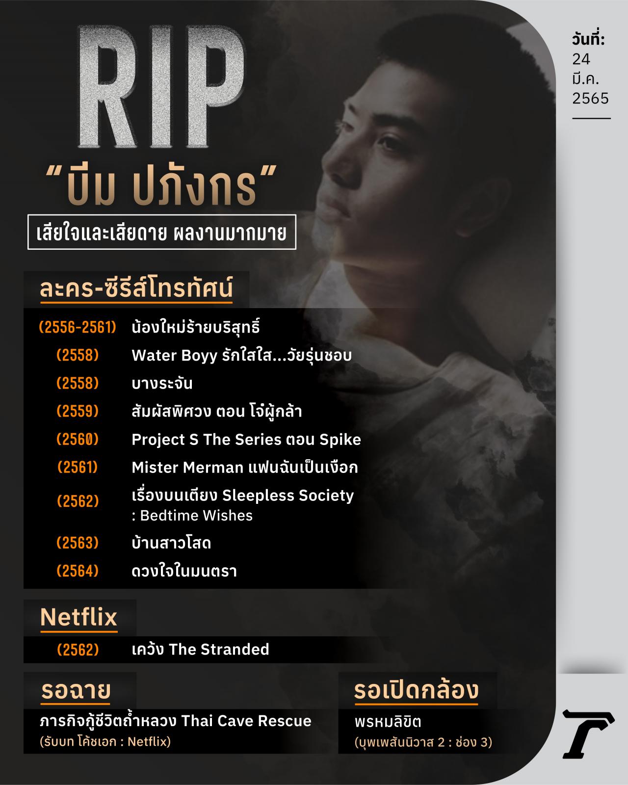 บีม ปภังกร ดาราหนุ่มผู้ล่วงลับ ผลงานในไทยมีมากมาย และ บีม เป็นดาราไทยที่เป็นที่รู้จักในต่างชาติอย่างมากมาย เพราะชื่อของ บีม ปภังกร มีปรากฏในซีรีส์ที่ออกฉายในแพลตฟอร์มสตรีมมิงอย่าง Netflix โดยเฉพาะการได้รับบท "คราม" พระเอกในซีรีส์ เคว้ง The Stranded ที่ฉายไปทั่วโลก
