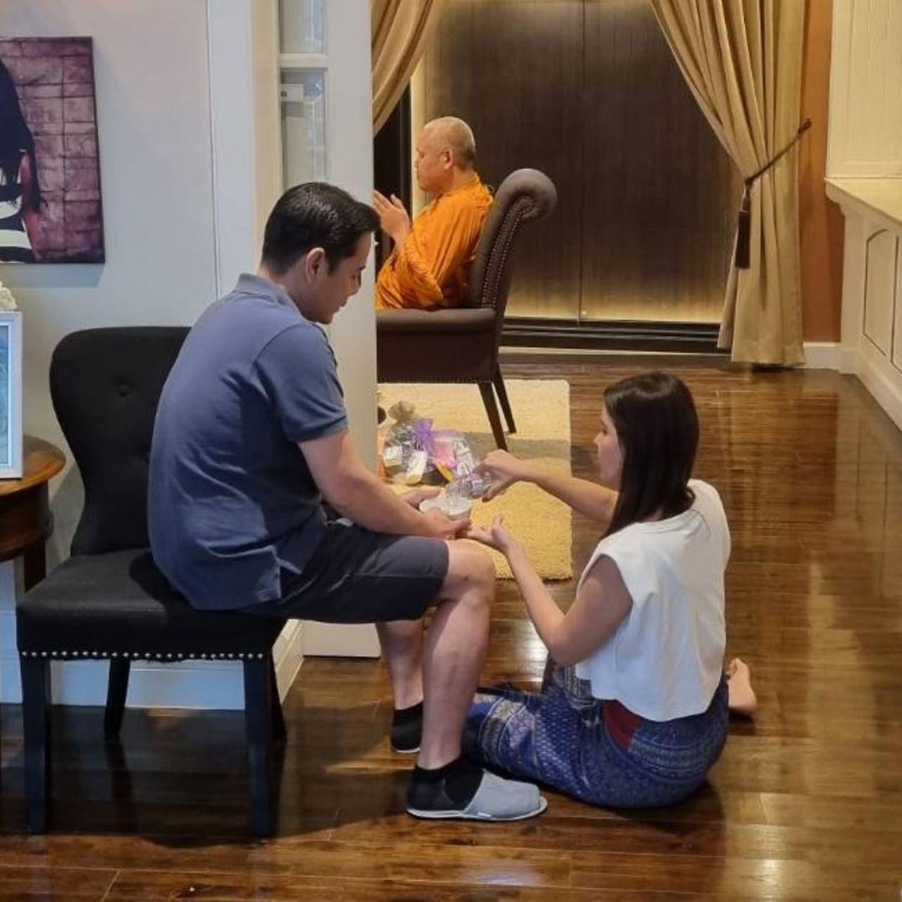 และล่าสุด เป๊ก สัณณ์ชัย ก็ได้ทีรีบโพสต์รูปทำบุญไหว้พระที่บ้าน เป็นรูปที่ทั้งคู่นั่งกรวดน้ำด้วยกัน ซึ่งในภาพนั้น ธัญญ่า ธัญญาเรศ นั่งอยู่บนพื้น ส่วนสามีนั้นนั่งบนเก้าอี้ พร้อมแคปชั่นว่า "ไหนว่าเป็นเมียยืนหนึ่ง @tanya_liyah #เมียยืนหนึ่ง"