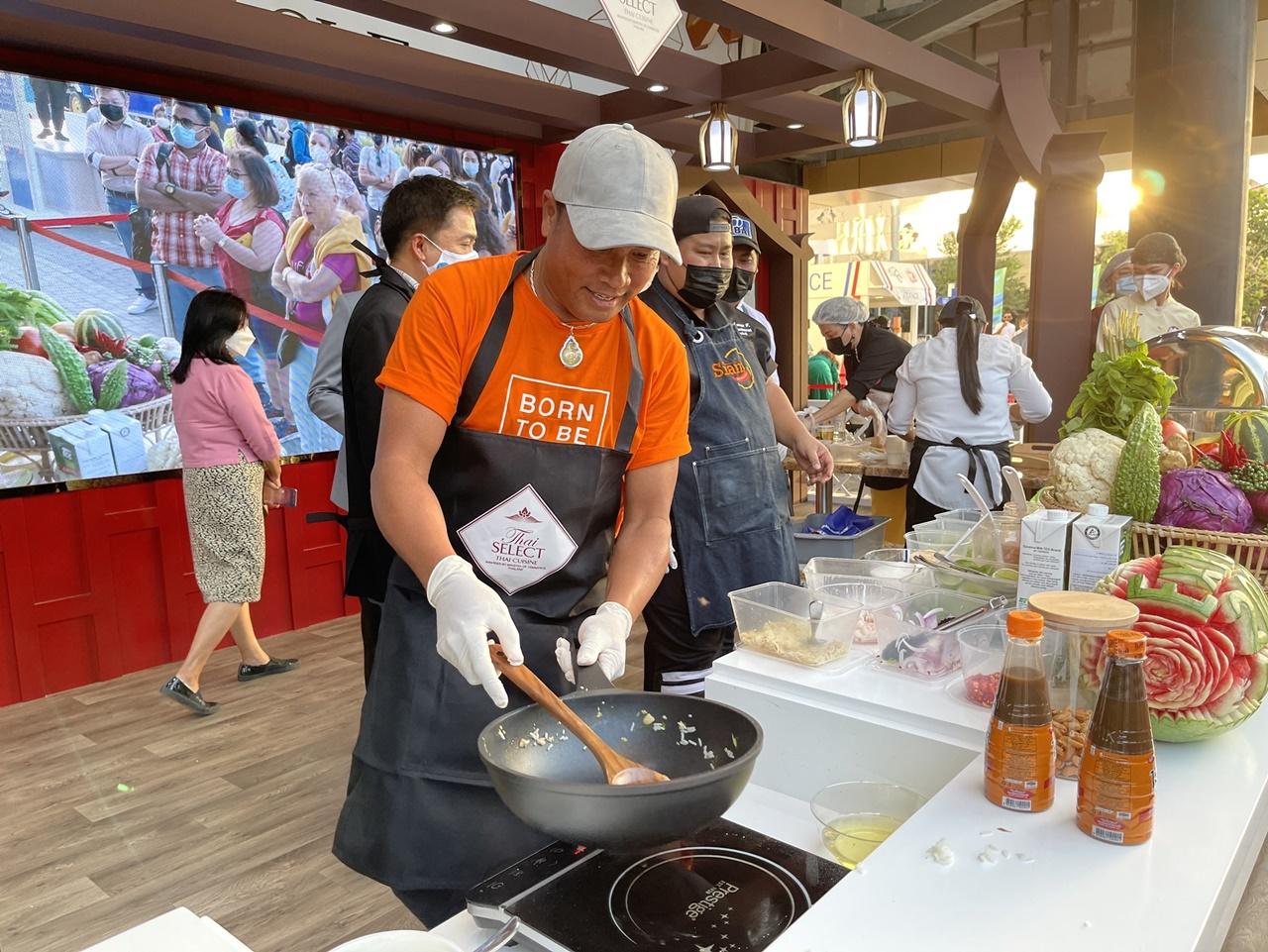 แต่ที่ได้มีโอกาสไปทำอาหารโชว์ที่นั่น คือพอออกบูธเสร็จแล้วเราจะเตรียมตัวกลับ แต่พอดีร้านอาหารไทยเขาบอกว่ามีคนสนใจให้เราไปโชว์การทำเมนูอาหารที่นั่น เราก็เลยคิดว่าถ้าแบบนี้เรามีโอกาส เราน่าจะไปเปิดตัว เพราะถือเป็นงานเอ็กซ์โปที่ใหญ่มาก มีหลายประเทศมาออกบูธ แล้วตรง Thai Pavilion เขาก็อยากให้พี่ไมค์โชว์เรื่องทำอาหารเมนูปลาร้า เลยไปทำข้าวผัดปลาร้าโชว์ที่นั่น”
