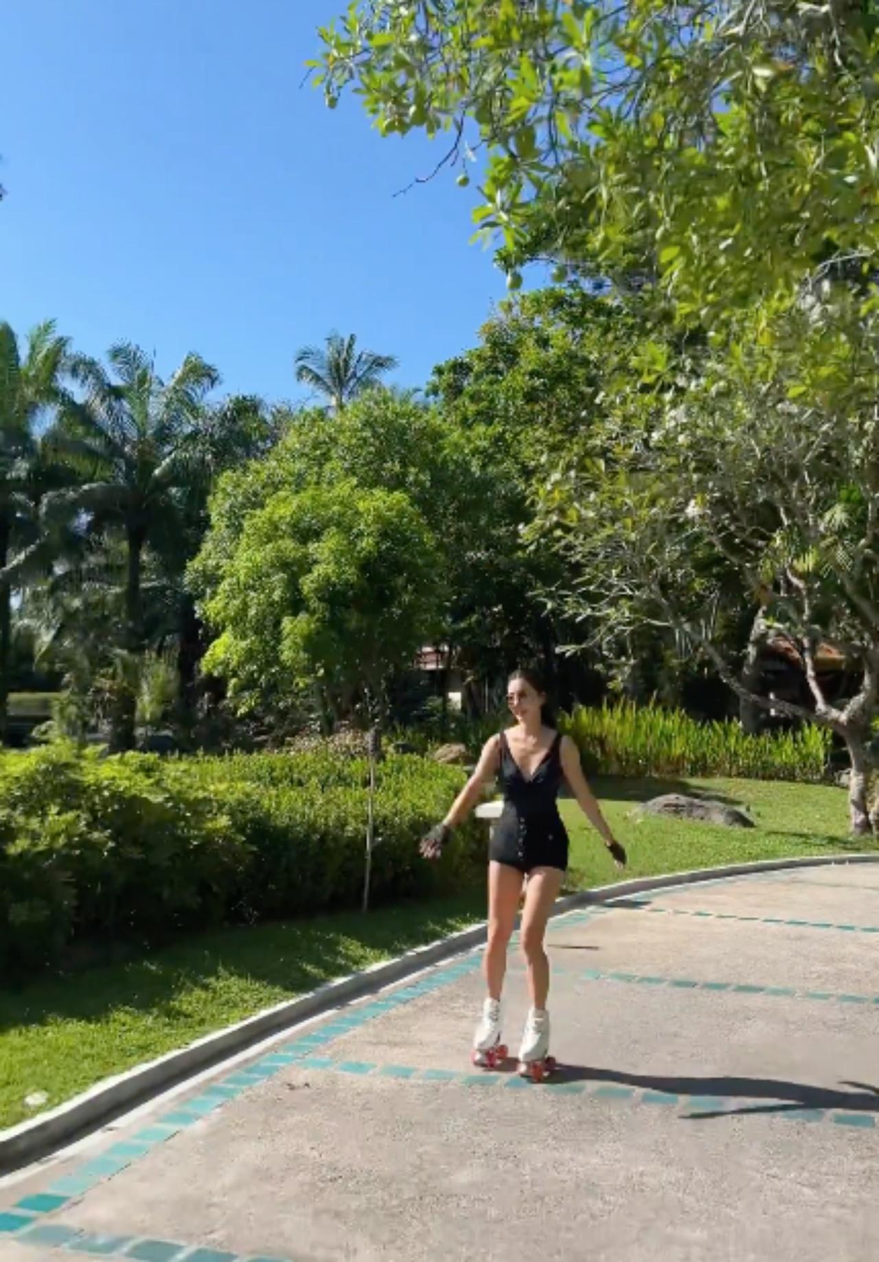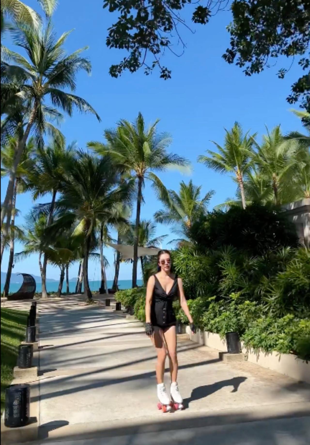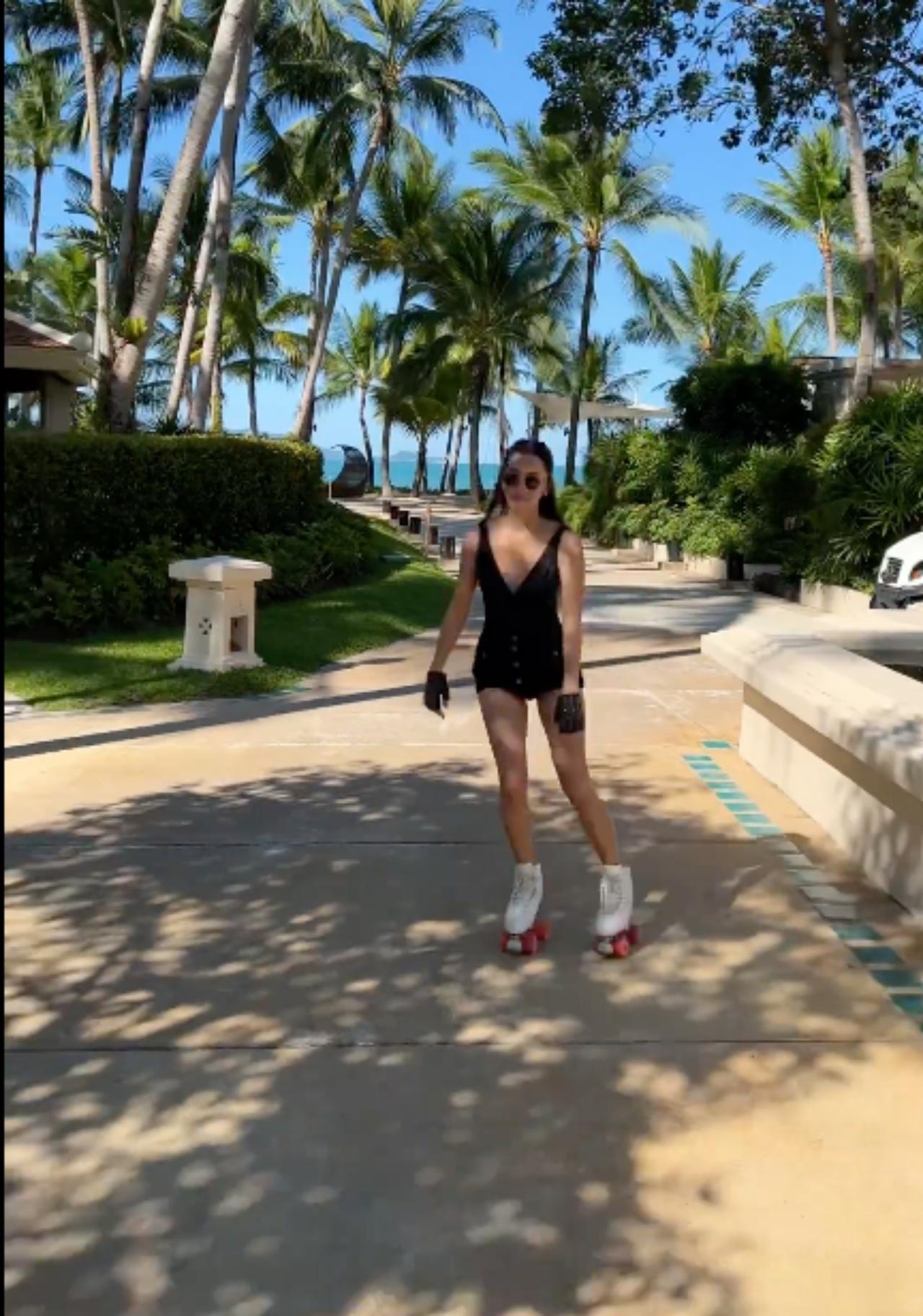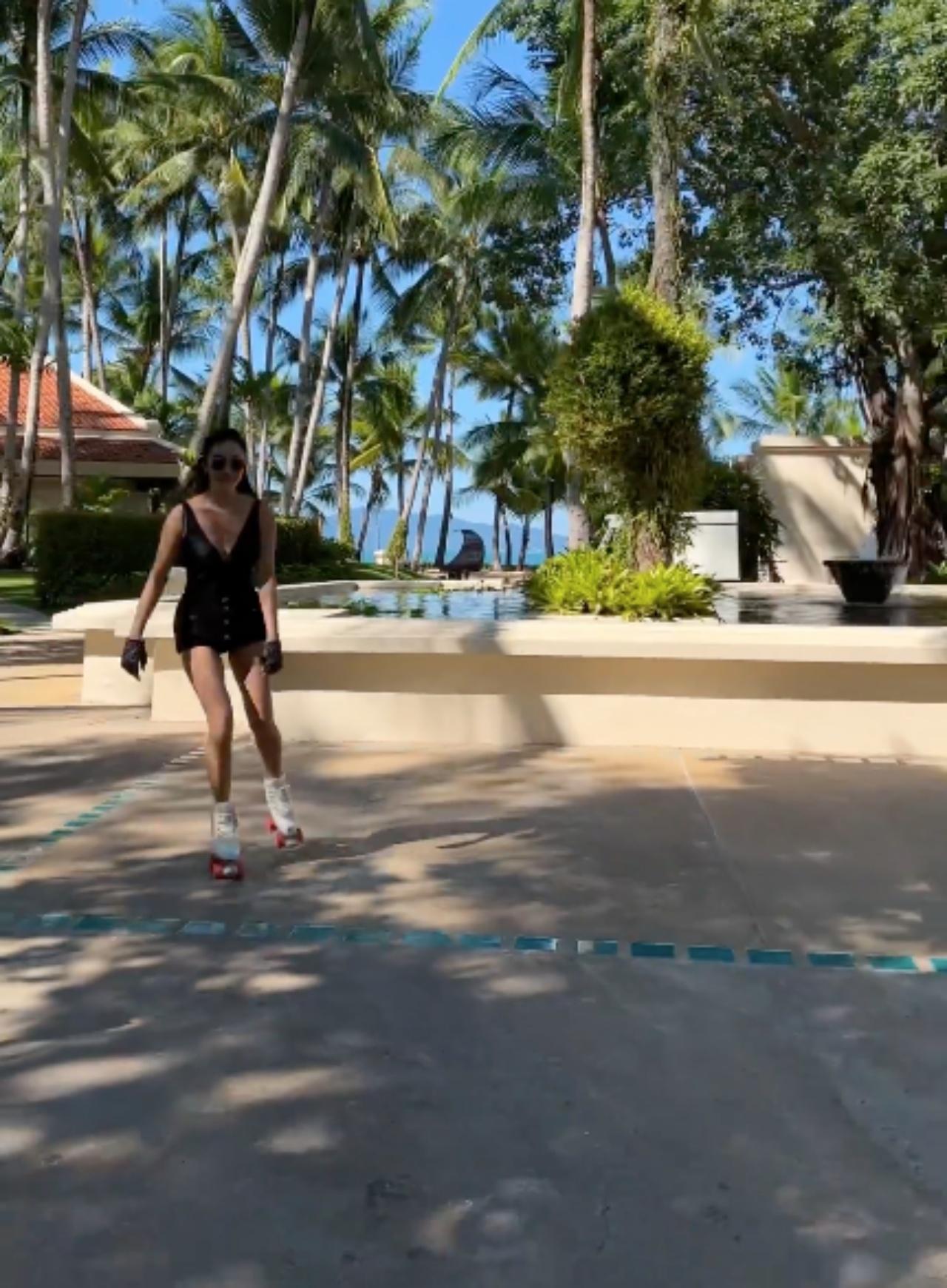 ล่าสุดปล่อยคลิปเล่นสเกตที่รีสอร์ต สันติบุรี ที่เพลินตาดีจริงๆ กับลีลาพลิ้วบนสเกต และเซ็กซี่เล็กๆ น่ารักสดใสๆ ในชุดสีดำ จนเพื่อนดาราและแฟนคลับตาเข้าไปชื่นชมในความสวยเซ็กซี่เต็มไปหมด.