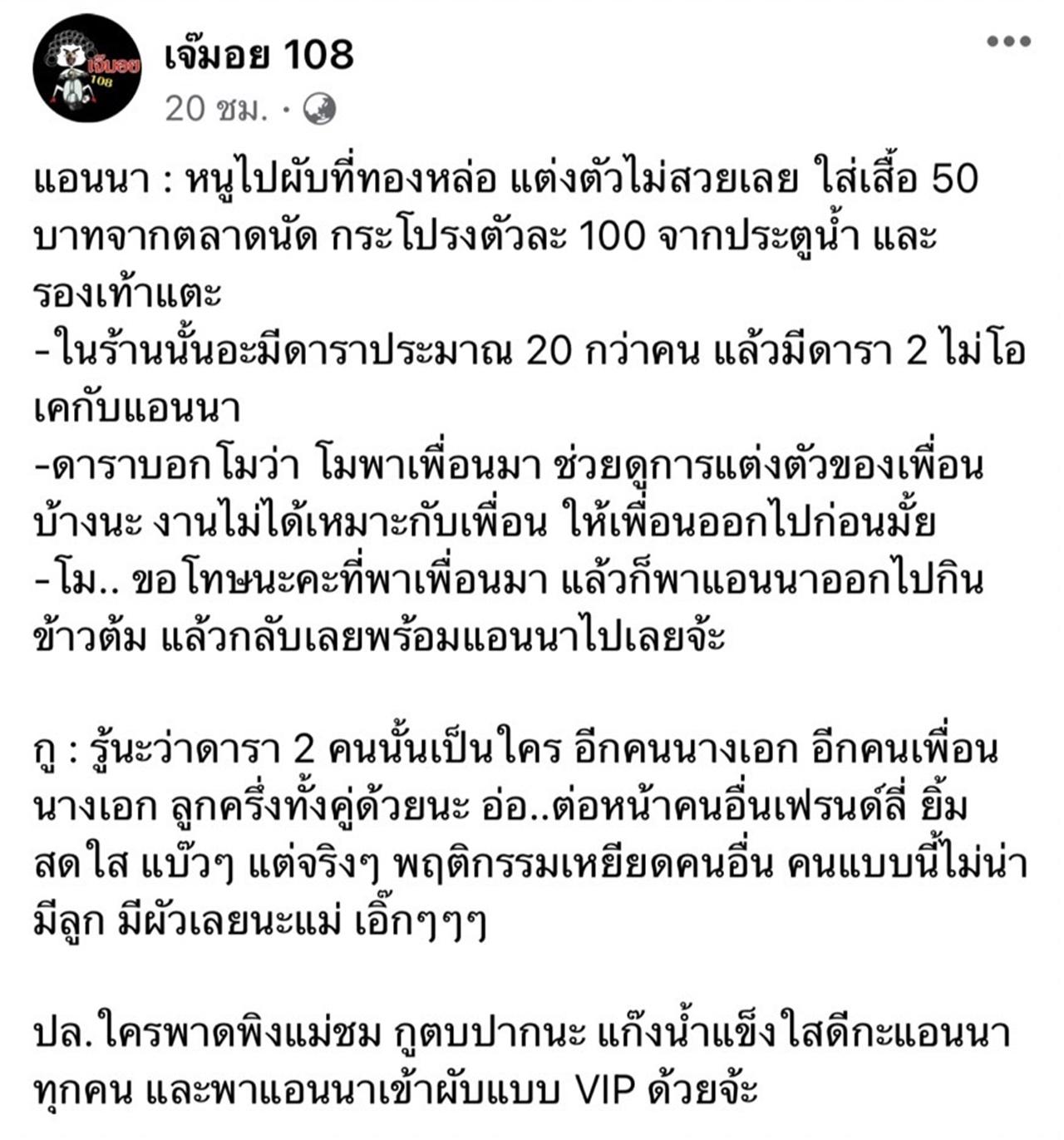 ปล.ใครพาดพิงแม่ชม กูตบปากนะ แก๊งน้ำแข็งใสดีกะแอนนาทุกคน และพาแอนนาเข้าผับแบบ VIP ด้วยจ้ะ"