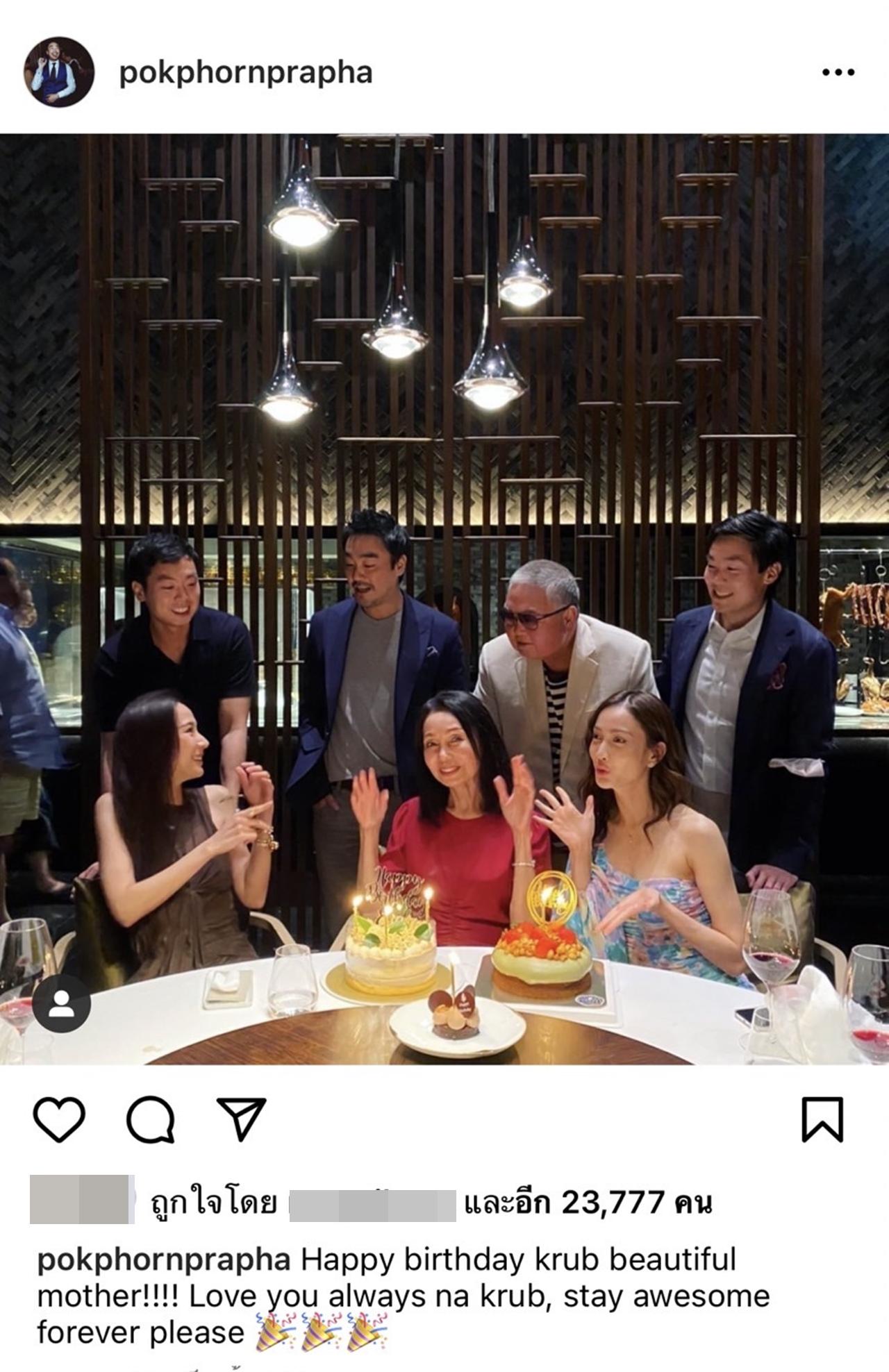 โดย พก ได้โพสต์รูปผ่านอินสตาแกรมที่อยู่กันพร้อมหน้าพร้อมตา และเขียนอวยพรวันเกิดให้กับคุณแม่ว่า "Happy birthday krub beautiful mother!!!! Love you always na krub, stay awesome forever please"