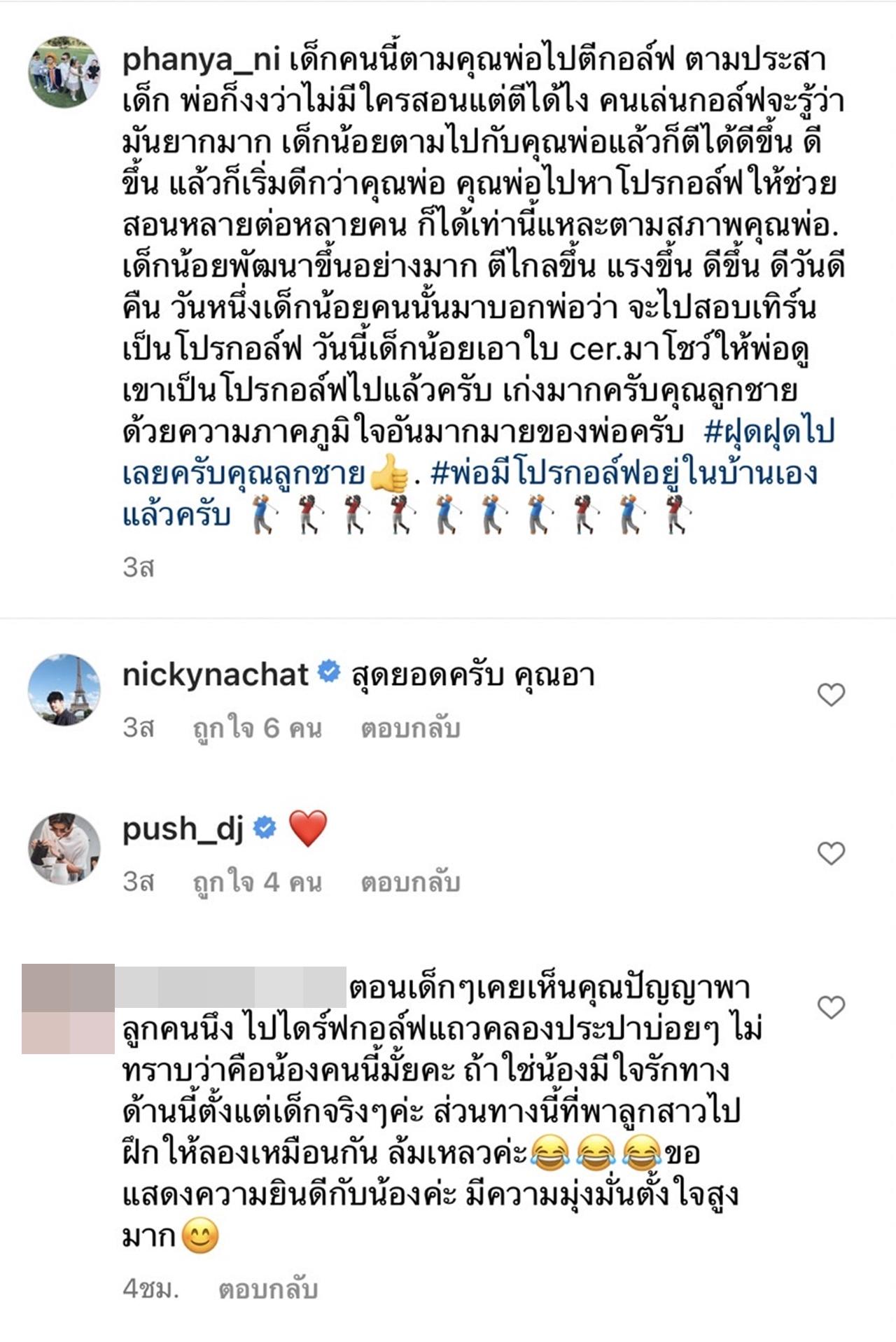 เด็กน้อยพัฒนาขึ้นอย่างมาก ตีไกลขึ้น แรงขึ้น ดีขึ้น ดีวันดีคืน วันหนึ่งเด็กน้อยคนนั้นมาบอกพ่อว่า จะไปสอบเทิร์นเป็นโปรกอล์ฟ วันนี้เด็กน้อยเอาใบ cer.มาโชว์ให้พ่อดู เขาเป็นโปรกอล์ฟไปแล้วครับ เก่งมากครับคุณลูกชาย ด้วยความภาคภูมิใจอันมากมายของพ่อครับ #ฝุดฝุดไปเลยครับคุณลูกชาย #พ่อมีโปรกอล์ฟอยู่ในบ้านเองแล้วครับ".