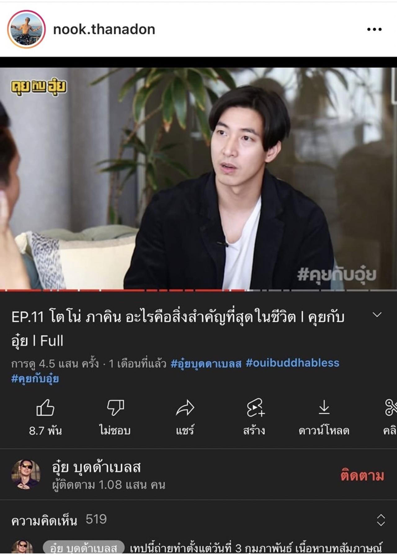 ล่าสุด นุ๊ก ก็ได้โพสต์ภาพจากคลิปที่นักร้องนักแสดงหนุ่ม โตโน่ ภาคิน ได้ไปให้สัมภาษณ์ในรายการทางช่องยูทูบ "คุยกับอุ๋ย" ของ อุ๋ย บุดด้า เบลส ซึ่ง นุ๊ก ก็ได้เผยความในใจถึง โตโน่ ภาคิน ที่นับถือเป็นพี่ชาย และยังเป็นที่พึ่งทางใจให้กับตัวเอง แม้ว่าทั้งคู่จะยังไม่เคยเจอตัวจริงกัน แต่ นุ๊ก ก็ยกให้ โตโน่ เป็นบุคคลที่ช่วยฮีลใจ และเป็นต้นแบบในการสู้กับทุกอย่างในชีวิต