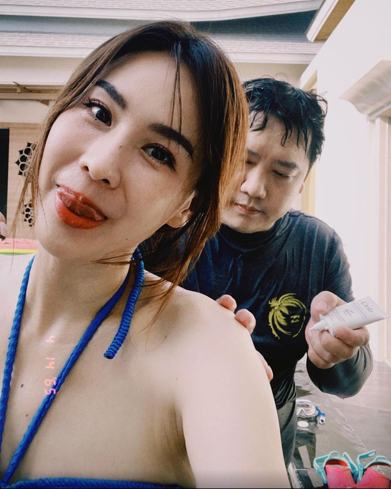 โดย นุ้ย ได้โพสต์ภาพตัวเองในทูพีซสีฟ้าสดใส ตัดกับผิวขาวเพิ่มความสว่างจ้าให้มากขึ้นไปอีก ต้องบอกเลยว่า นานๆ ทีจะได้เห็น แม่นุ้ย ในชอตนี้ เพราะส่วนมากแฟนๆ จะได้เห็นแต่มุมฮาๆ ของนุ้ย พร้อมเขียนข้อความการันตีว่า เซ็กซี่ได้สามียังไม่ว่า "คุณเค้ามาแล้ว มาทาครีมให้ ยังไม่ได้ว่าอะไร"