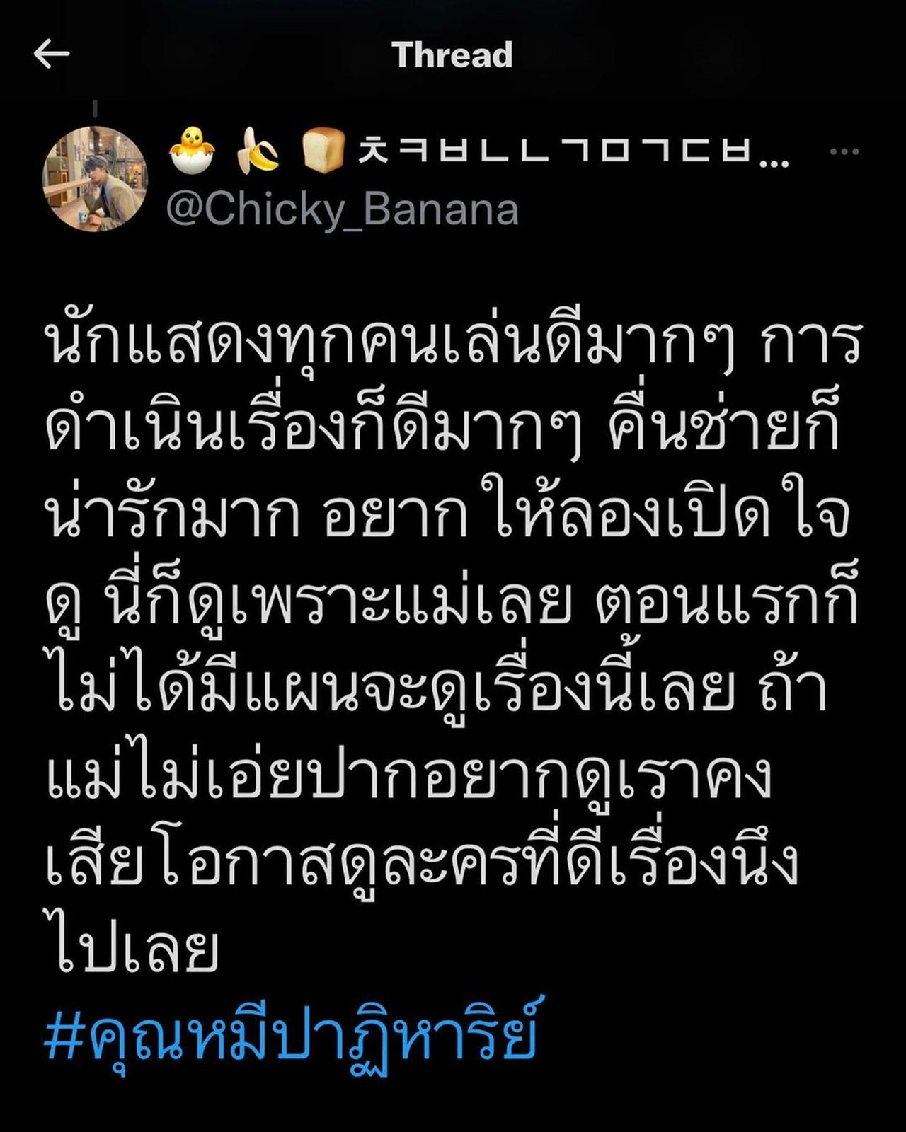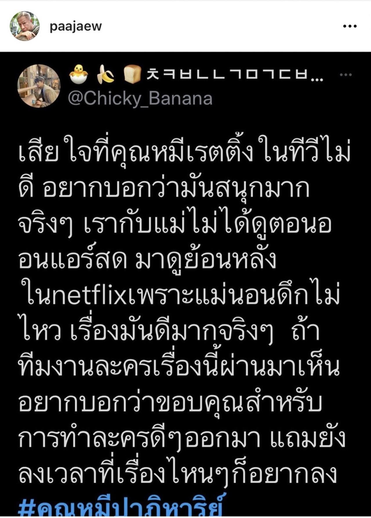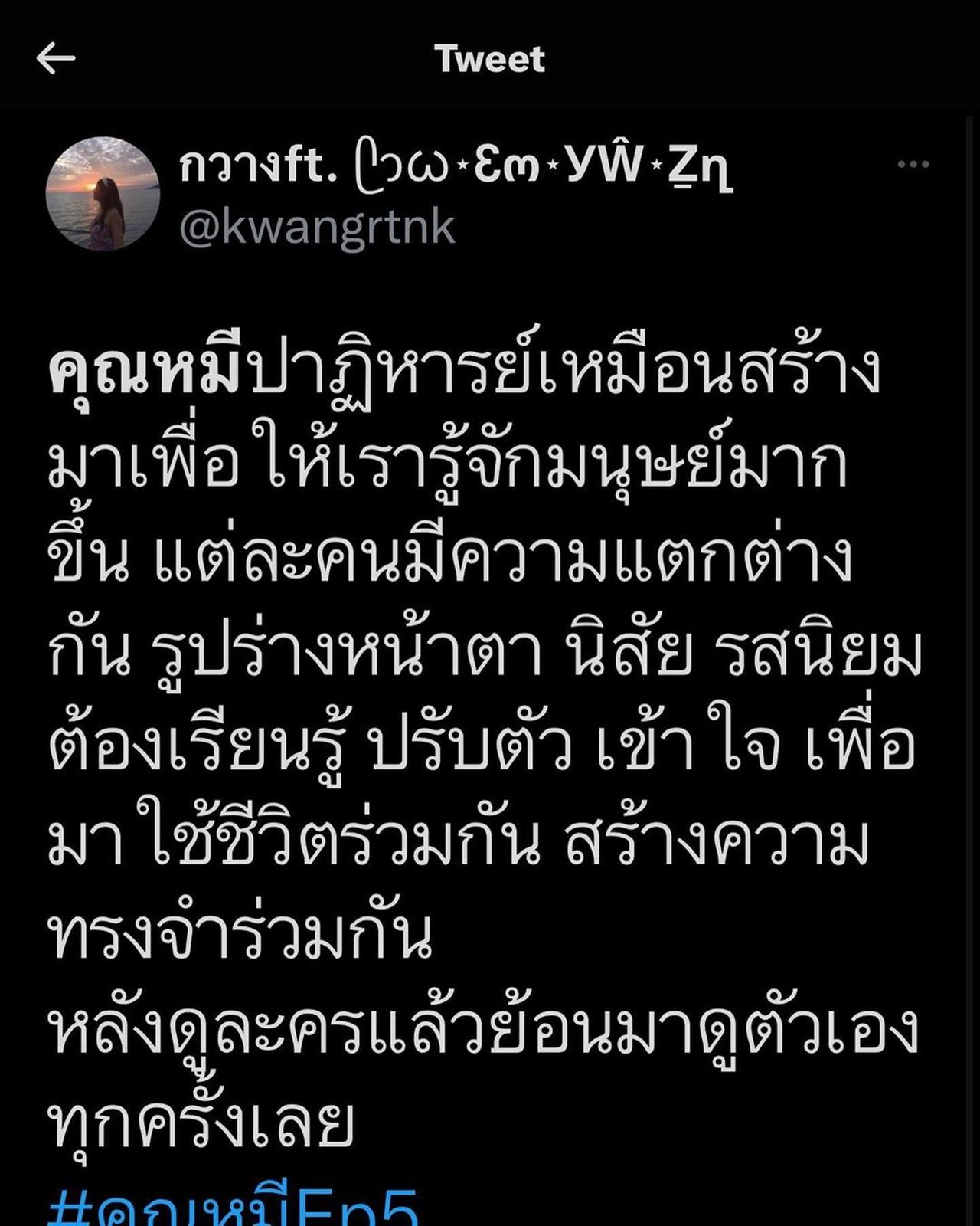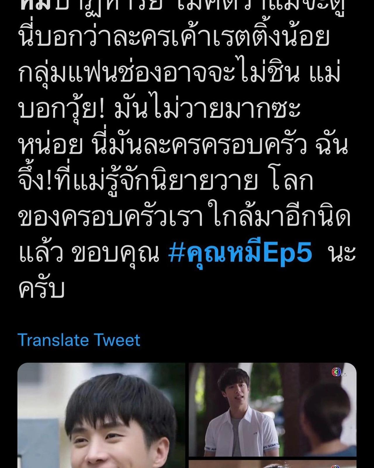 "บางทีความสำเร็จก็อาจไม่ได้มาจากตัวเลข สิ่งที่ผู้ชมได้แสดงความรู้สึกออกมา หลังจากได้ดู #คุณหมีปาฏิหาริย์ แล้วต่างหาก ที่ทำให้เราและทีมงาน รู้สึกว่าสิ่งที่ตั้งใจจะสื่อสารกับผู้ชม