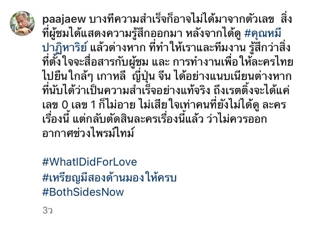 ถึงเรตติ้งจะได้แค่ เลข 0 เลข 1 ก็ไม่อาย ไม่เสียใจเท่าคนที่ยังไม่ได้ดู ละครเรื่องนี้ แต่กลับตัดสินละครเรื่องนี้แล้ว ว่าไม่ควรออกอากาศช่วงไพรม์ไทม์ #WhatIDidForLove #เหรียญมีสองด้านมองให้ครบ #BothSidesNow"
