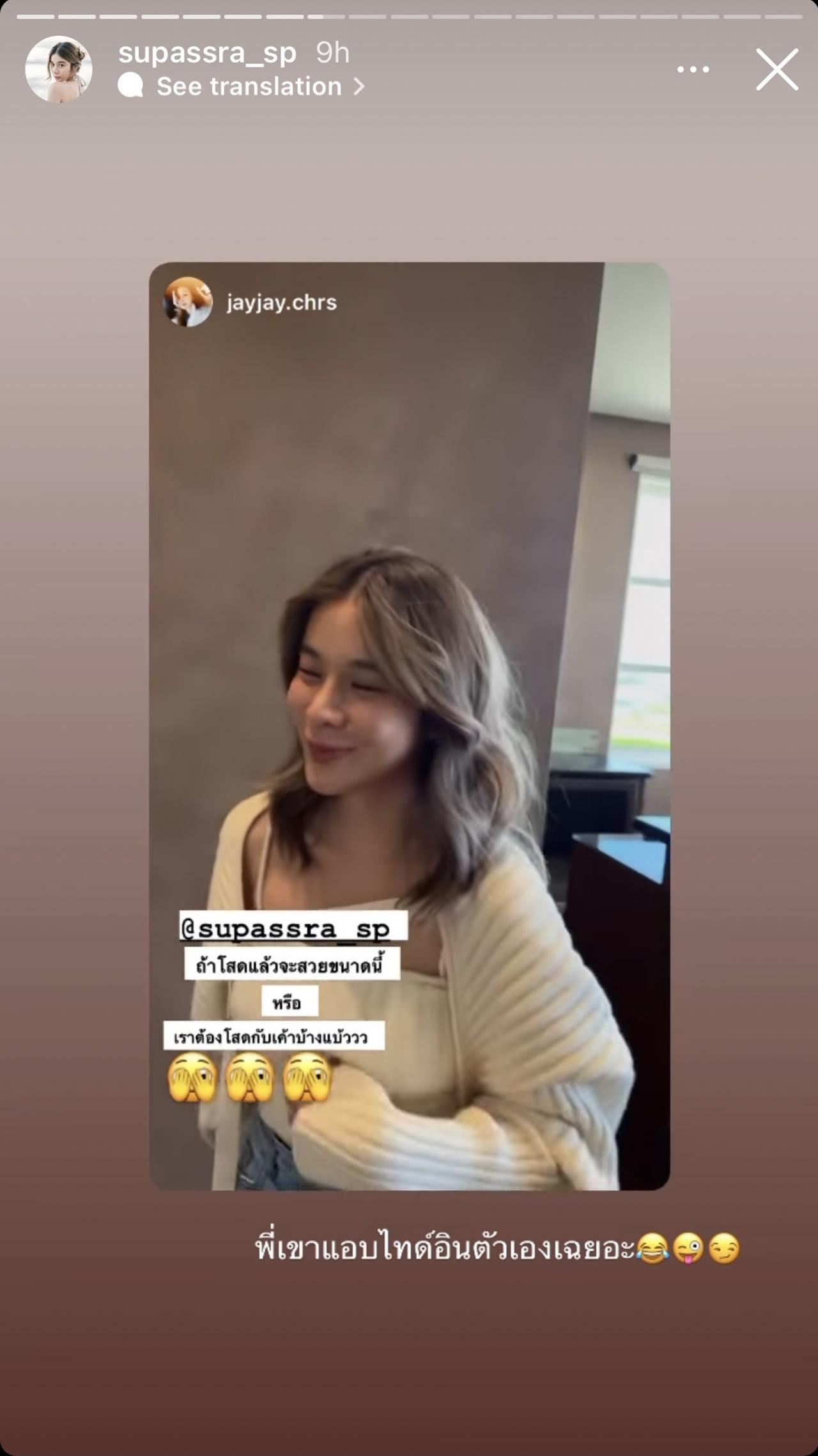 แต่งานนี้เจ้าตัวก็ยังไม่เคยออกมาตอบประเด็นที่หลายคนสงสัยเลยสักครั้ง แต่ล่าสุดนางเอกสาวได้รีโพสต์ไอจีสตอรี่ที่ถูกเพื่อนอัดคลิปแซวลง