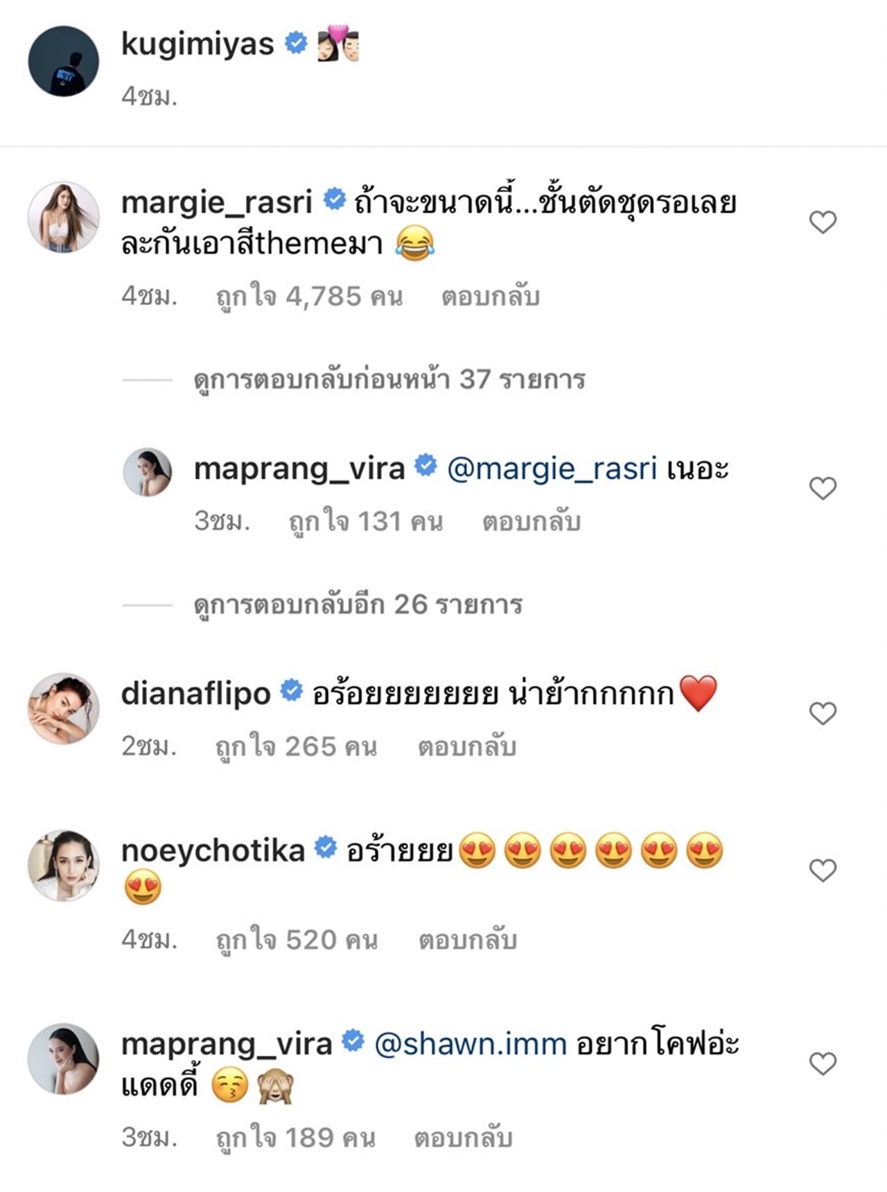 งานนี้ทำเอาคนที่เห็นภาพดังกล่าวต่างยิ้มไปตามๆ กัน พร้อมกับเชียร์ให้ทั้งคู่มีข่าวดีกันเร็วๆ ด้านเพื่อนสนิทอย่าง มาร์กี้ ราศรี ก็ได้เข้ามาคอมเมนต์แซวว่า "ถ้าจะขนาดนี้…ชั้นตัดชุดรอเลยละกัน เอาสี theme มา" งั้นเรามารอลุ้นกันว่า ทริปนี้ทั้งคู่จะมีข่าวดีรึเปล่าน้า.