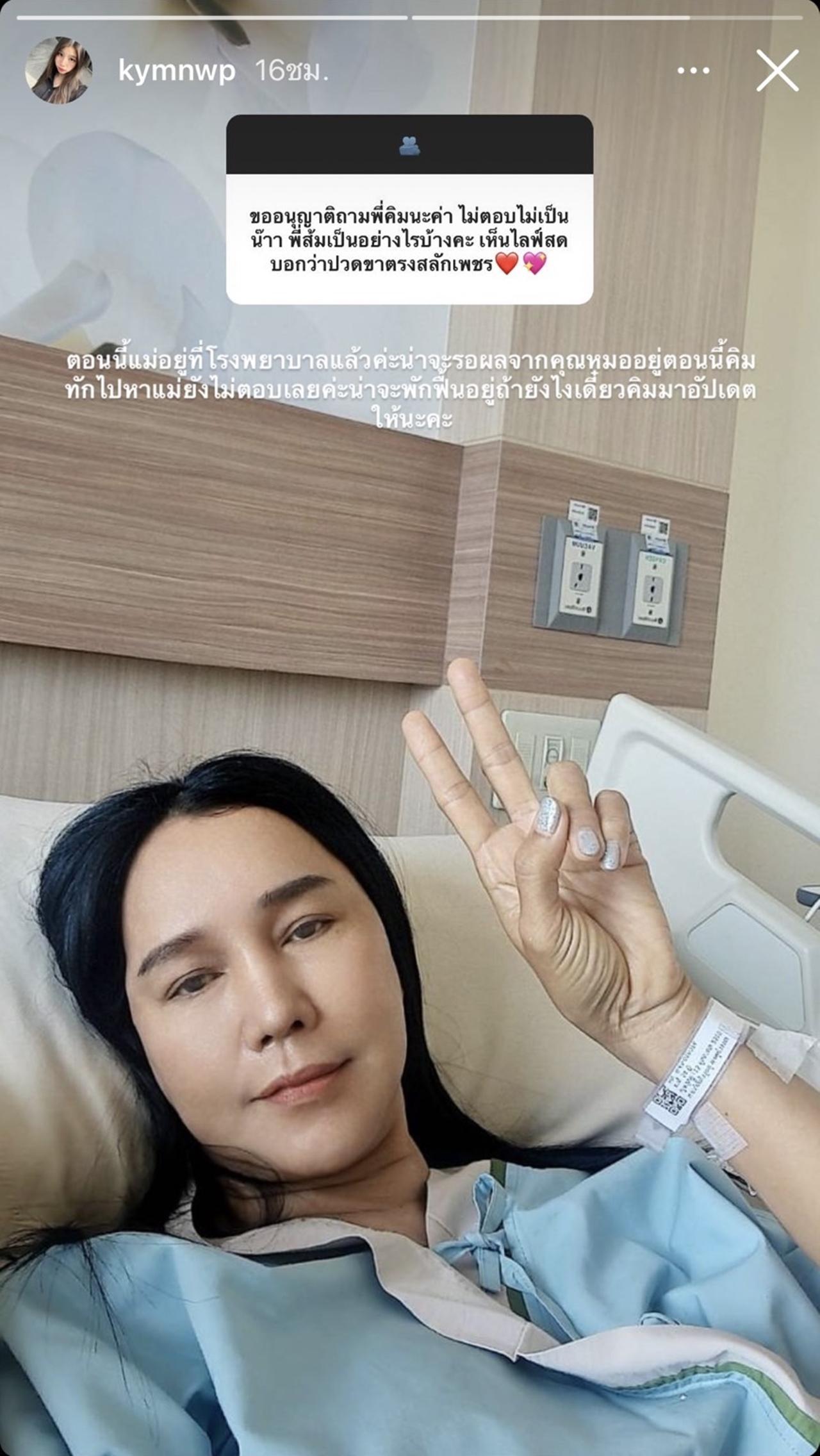 ด้าน คิม ก็ได้ตอบกลับว่า "ตอนนี้แม่อยู่ที่โรงพยาบาลแล้วค่ะน่าจะรอผลจากคุณหมออยู่ตอนที่คิมทักไปหาแม่ยังไม่ตอบเลยค่ะน่าจะพักฟื้นอยู่ ถ้ายังไงเดี๋ยวคิมมาอัปเดตให้นะคะ"