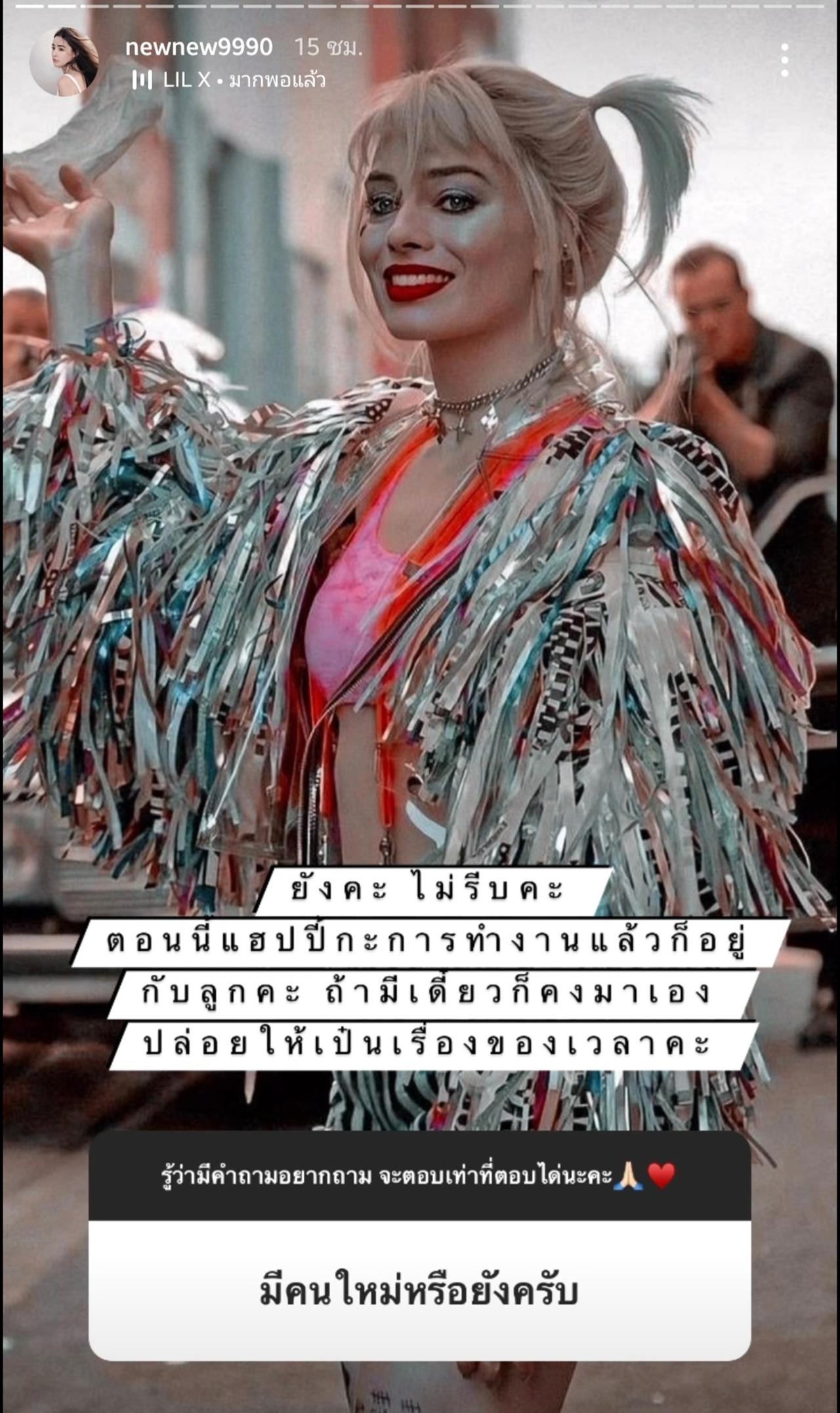 "ยังค่ะ ไม่รีบค่ะ ตอนนี้แฮปปี้กับการทำงานแล้วก็อยู่กับลูกค่ะ ถ้ามีเดี๋ยวก็คงมาเอง ปล่อยให้เป็นเรื่องของเวลาค่ะ"