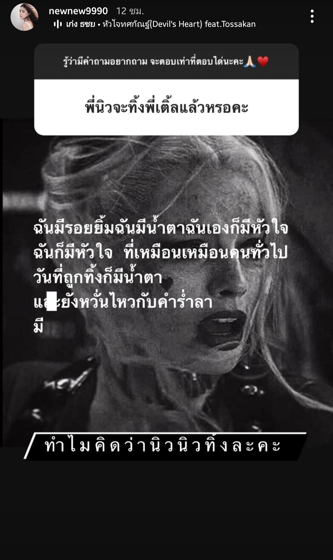 "ทำไมถึงคิดว่านิวนิวทิ้งล่ะคะ"