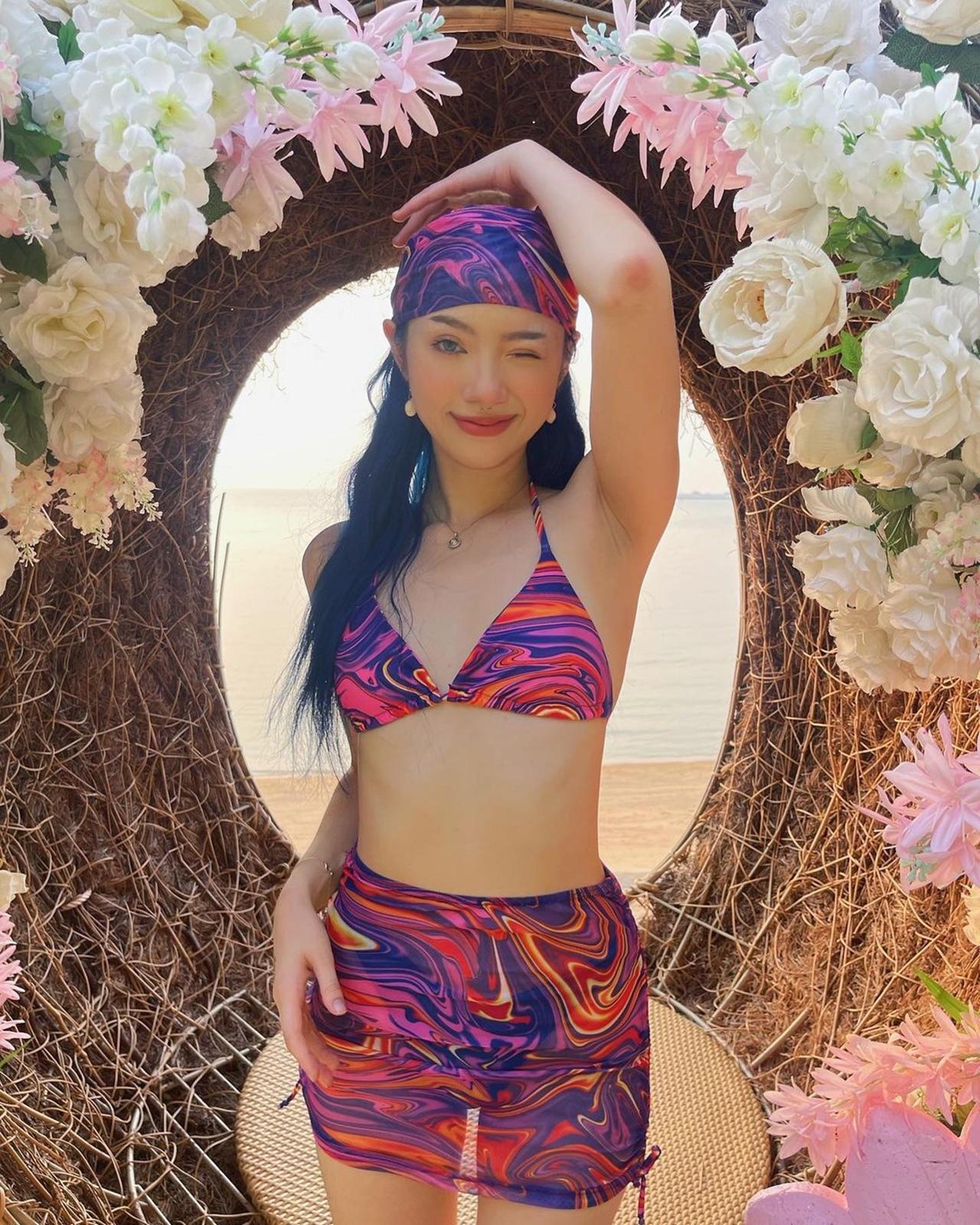 และล่าสุดเรียกว่า แซ่บไม่พักจริงๆ เมื่อ พลอยชมพู ได้เผยภาพตัวเองในชุดว่ายน้ำแบบวันพีซสีดำโฮโลเเกรม ที่ใส่แล้วสะท้อนแสงไฟตอนกลางคืนเมื่อเปิดแฟลชถ่ายภาพ แถมชุดนี้ยังเว้าหลังลงมาจนถึงเอว เผยให้เห็นผิวขาวๆ และบั้นท้ายแซ่บๆ แบบเต็มตา