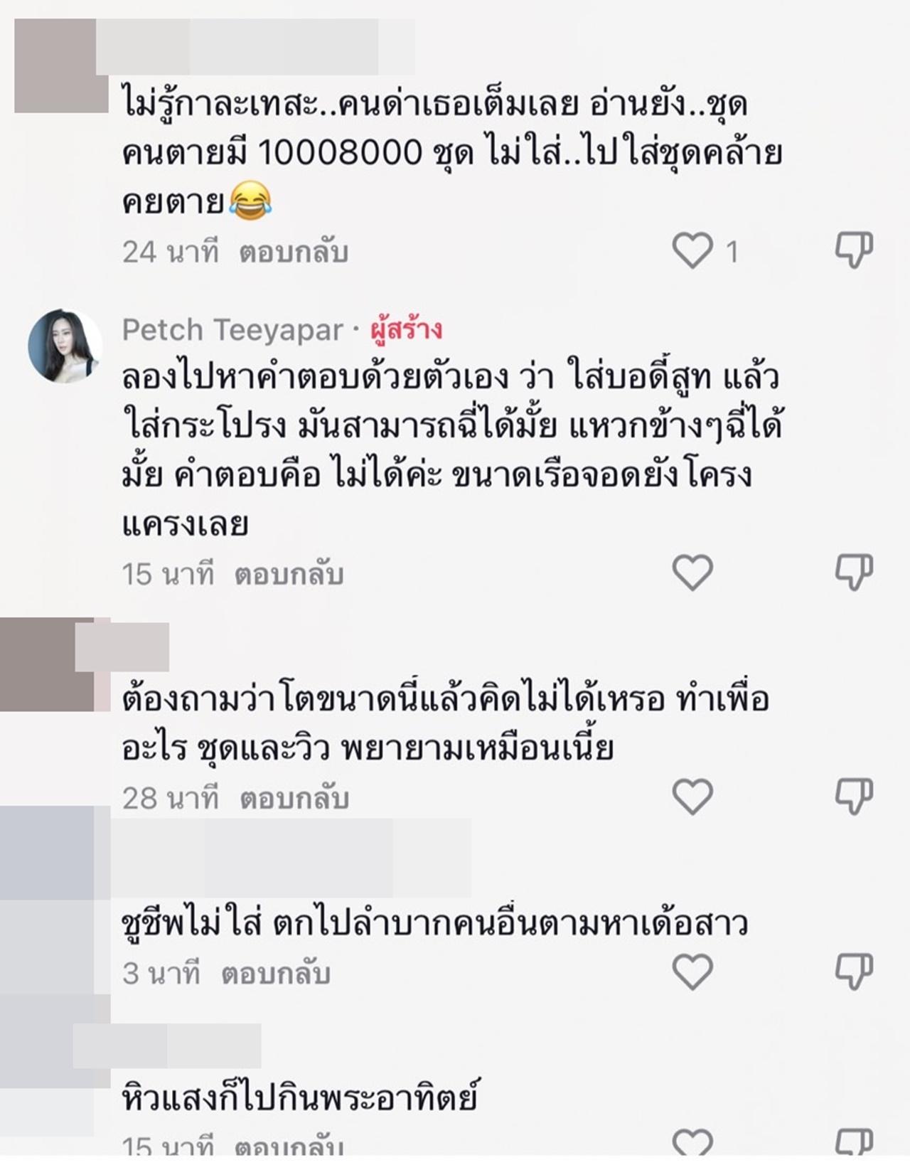 แม้นางงามสาวจะได้ชี้แจงถึงเจตนาที่ได้แต่งตัวคล้ายแตงโมไป ก็ยังมีชาวเน็ตเข้ามาคอมเมนต์ตำหนิเธออย่างต่อเนื่องเหมือนเดิม