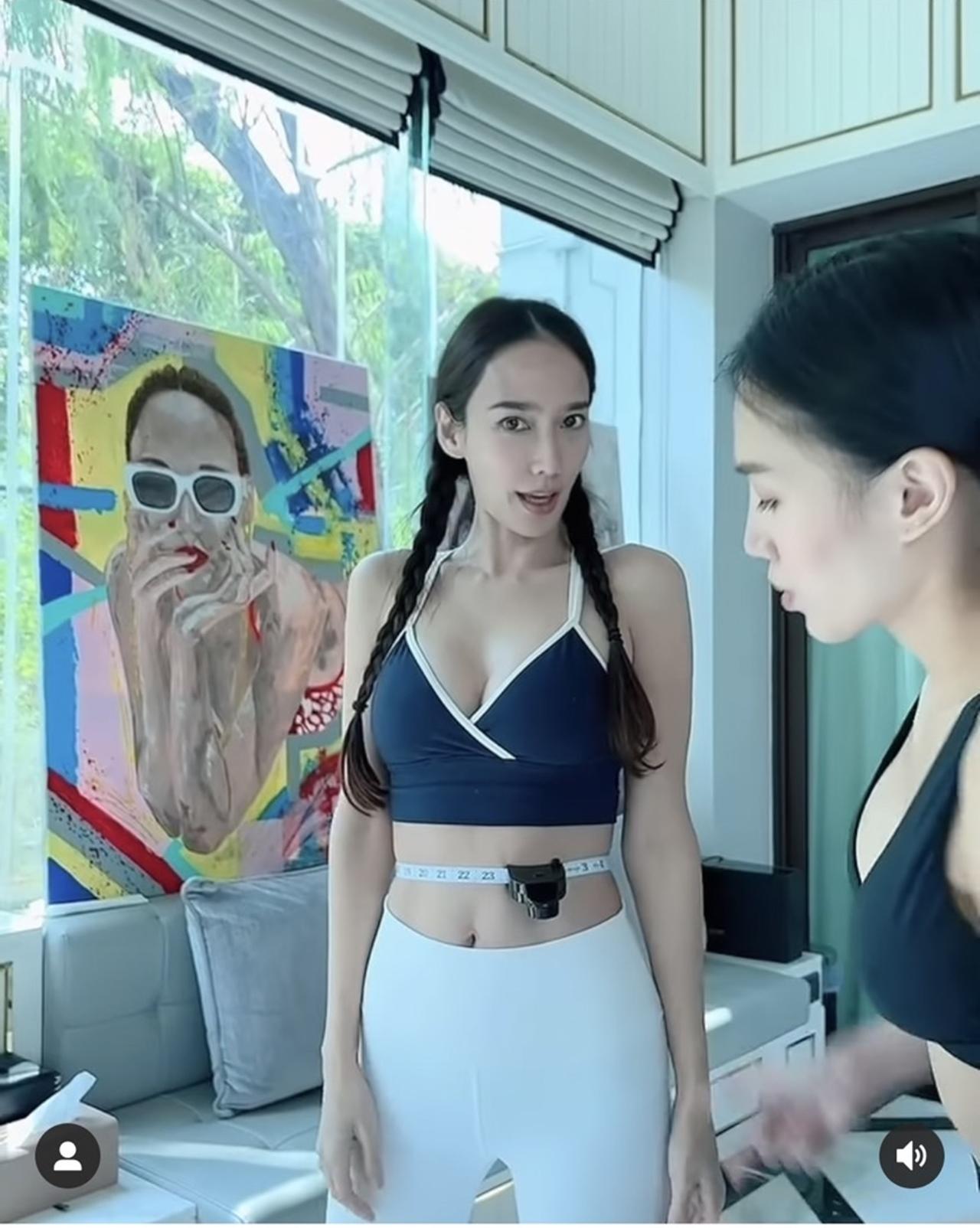 และล่าสุด อั้ม ก็ได้เผยคลิปที่วัดสัดส่วนรอบเอวให้แฟนๆ ได้เห็น หลังจากที่กลับมาจากทริปทะเล ซึ่งตอนนี้เอวของ อั้ม ก็อยู่ที่ประมาณ 24 นิ้ว โดย อั้ม บอกว่า รอบเอวตัวเองจาก 23 นิ้ว ขึ้นมา 23.8 เกือบจะ 24 นิ้ว และน้ำหนักขึ้นมา 1 กิโลกรัม เพราะกินขนมหวานเยอะมาก แต่ตั้งใจจะให้รางวัลตัวเอง พอตอนนี้กลับมาจากเที่ยวแล้วก็จะตั้งใจกลับมาฟิตเหมือนเดิม พร้อมให้กำลังใจคนที่จะเริ่มออกกำลังกายไปพร้อมกัน