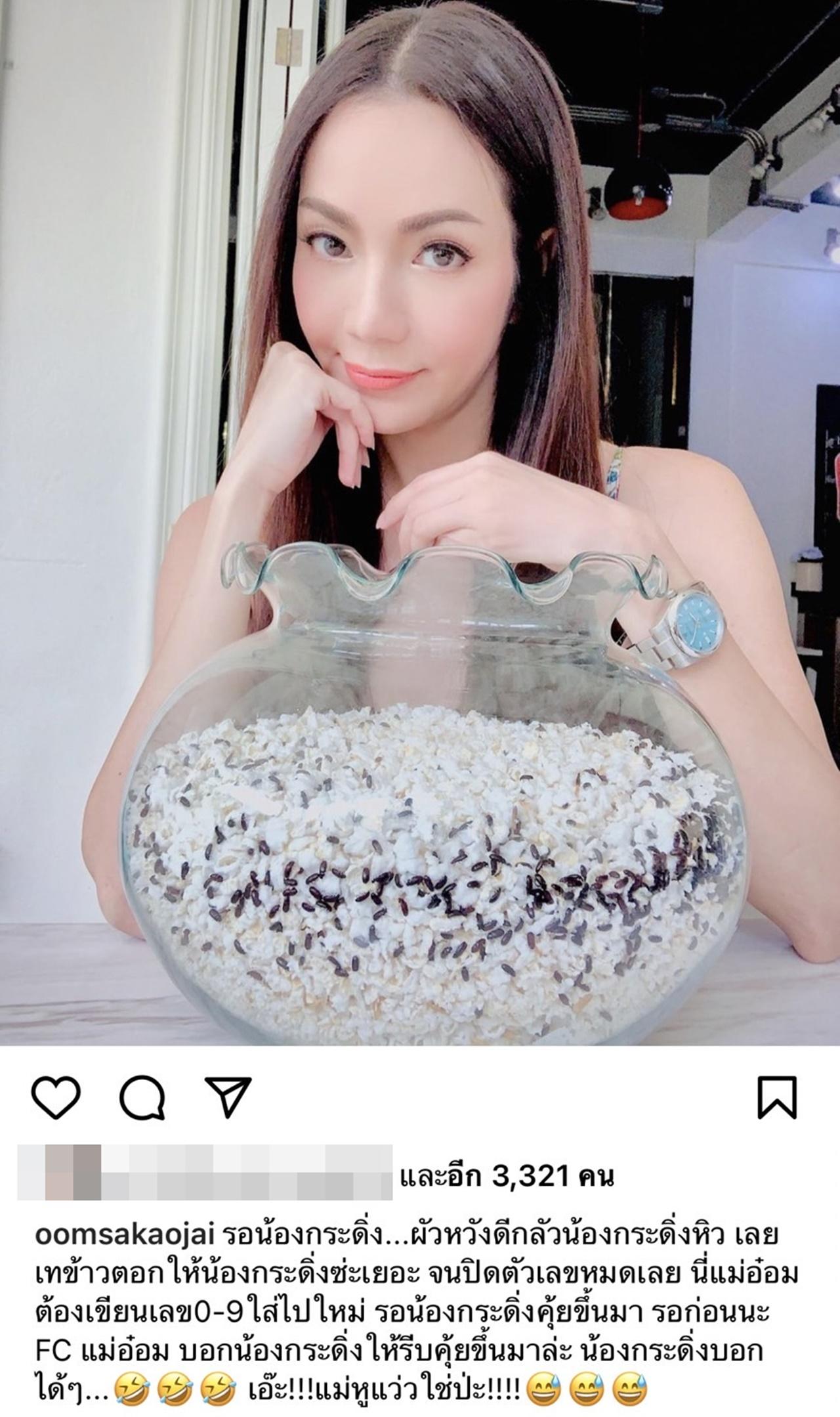 งานนี้นอกจากจะมีแฟนๆ มารอลุ้นตัวเลขจาก อ๋อม สกาวใจ แล้ว ก็ยังมีเพื่อนๆ ในวงการบันเทิงที่เข้ามาคอมเมนต์บอกถ้าได้ตัวเลขแล้วส่งมาบอกในอินบ็อกซ์ให้ด้วยนะ