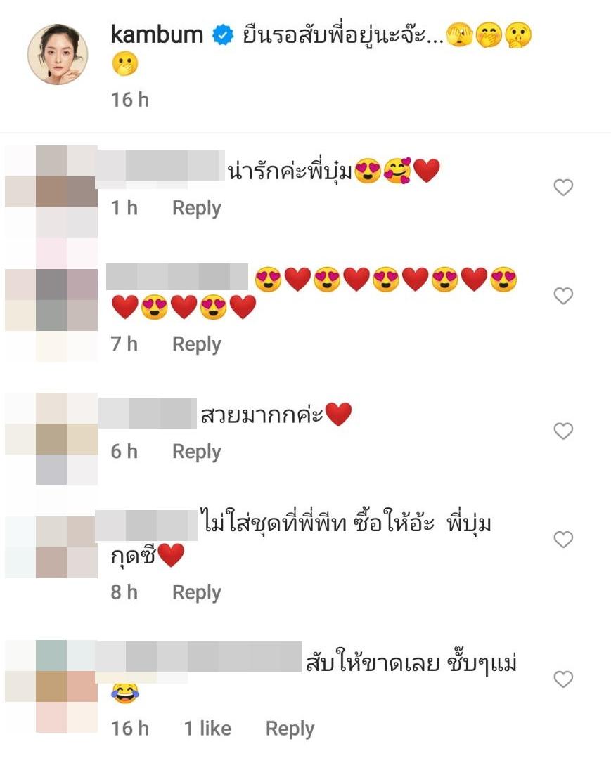 ซึ่งหลังจากที่แก้มบุ๋มโพสต์ไป ทำเอาชาวเน็ตโยงไปถึง ขุน ชานนท์ อดีตคนรักของนางร้ายสาวที่มีปัญหากันก่อนจะเลิกรากันไป และมีข่าวร้อนในเวลานี้พอดี พร้อมทั้งคอมเมนต์แบบรัวๆ อาทิ สับให้ขาดเลย ชั๊บๆ แม่, โฟกัสที่พี่พีทและความสุขในปัจจุบันนะคะ เดินออกมาไกลและดี มีสุขกว่าหลายเท่ามากกก อย่าให้แสงเค้าค่ะ, สับให้เละค่ะคุณแก้มบุ๋ม ฯลฯ