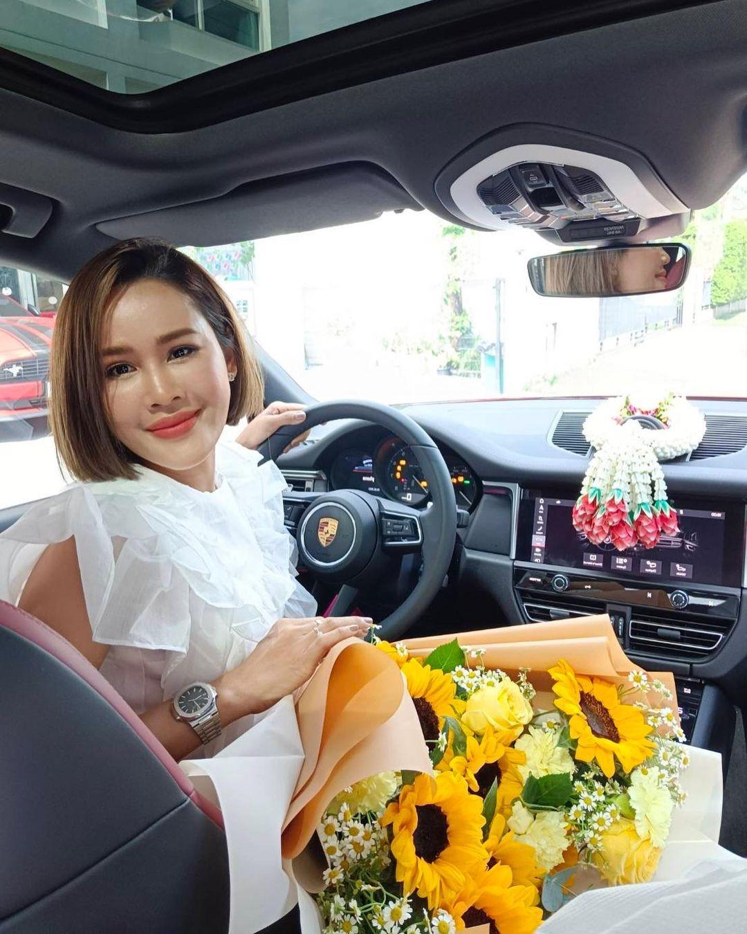 อีกทั้งยังโพสต์ภาพตอนรับเงินอั่งเปาตอนไปรับรถ เขียนข้อความว่า “วันนี้วันดีของเราจริงๆ 555555 ได้อั่งเปาด้วย อิอิ ขอบคุณพี่สาวที่รัก @paigun.momae รอสีฟ้าน่าาาาาาา” ก่อนจะโพสต์ภาพตอนอยู่กับสามีบนรถและเขียนข้อความว่า “เมื่อวานสายไหม้ตั้งแต่ก่อนขับออกจากศูนย์เลยพี่เช่ งานด่วนแรกของพี่เช่ เริ่มแล้วจ๊ะ ส่งวินไปรร พ่อแม่ลุยต่อ ขอให้ทุกท่านโชคดีในวันนี้ทั้งวันค่ะ”