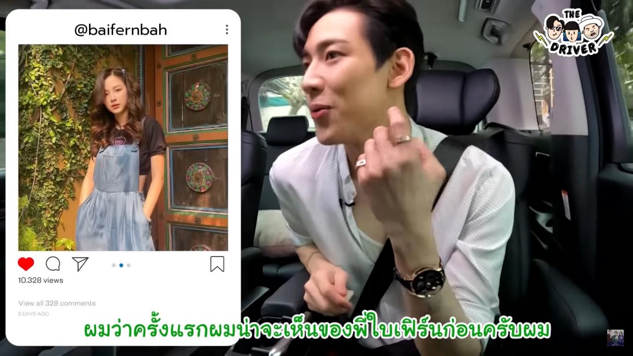 ซึ่งในบางช่วงของรายการ แบมแบมพูดถึงความชื่นชอบนางเอกสาว ใบเฟิร์น พิมพ์ชนก ลือวิเศษไพบูลย์ ในฐานะแฟนคลับ และรับร้องเพลงประกอบภาพยนตร์ "อ้าย..คนหล่อลวง" ก็เพราะใบเฟิร์น โดยพูดถึงตอนที่ได้ดูรายการ The Driver ครั้งแรกไว้ว่า “ตอนแรกผมว่าครั้งแรกผมน่าจะเห็นของพี่ใบเฟิร์นก่อนครับผม” ซึ่งโอ๊ตบอกว่าเป็นเทปแรกเลย แบมแบมพูดอีก “เพราะว่าผมชอบพี่ใบเฟิร์นครับ แฟนคลับๆ ตอนเรื่องของ GDH อันนั้นอ่ะครับ เรื่อง "อ้าย..คนหล่อลวง" อ่ะครับ ที่ผมรับก็เพราะว่าพี่ใบเฟิร์นเล่นครับผม”