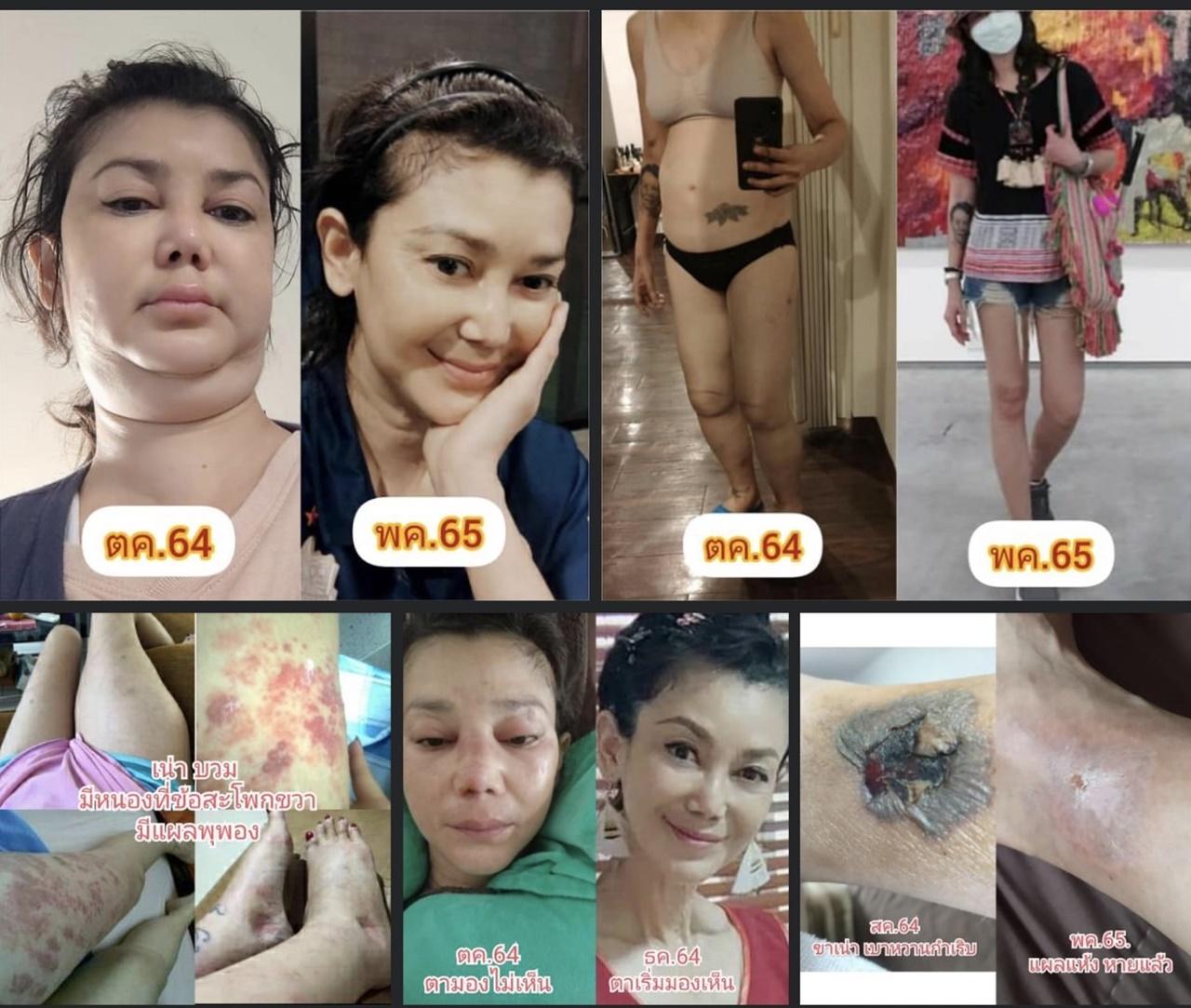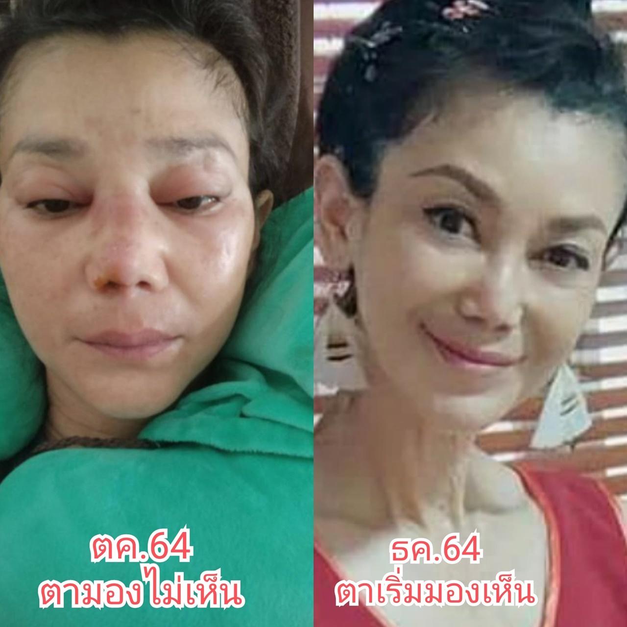 พร้อมกับลงรูปและเขียนบรรยายใต้ภาพเอาไว้ว่า "ไตวาย ก็จะบวม..วันนี้ ลดบวม ดีขึ้นเยอะแล้ว, ไตวาย บวมทั้งตัว เดินไม่ได้..วันนี้ ลดบวม เดินได้ ขับรถได้ แทบปกติแล้ว,