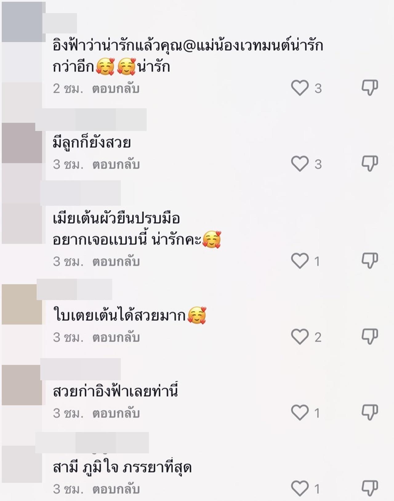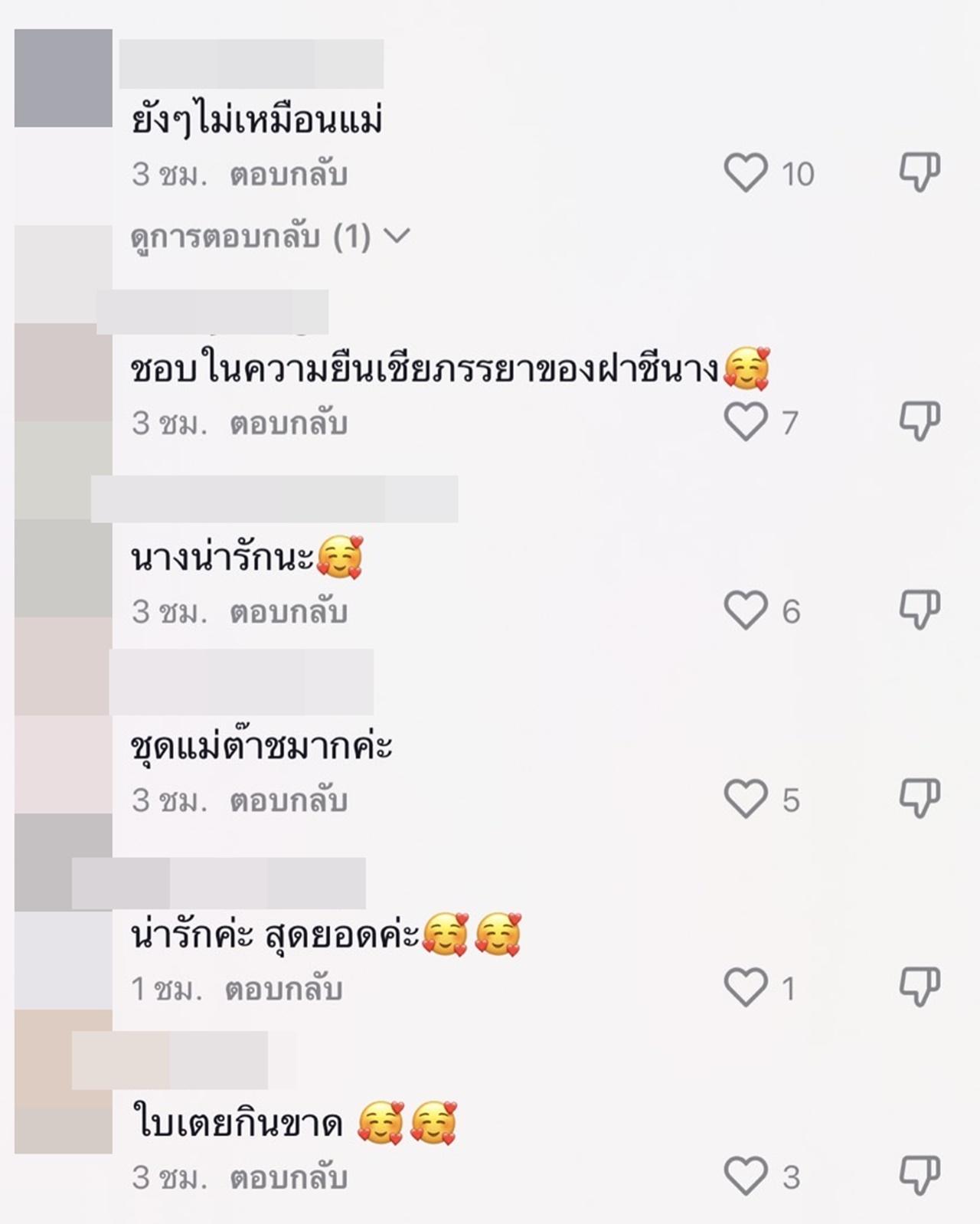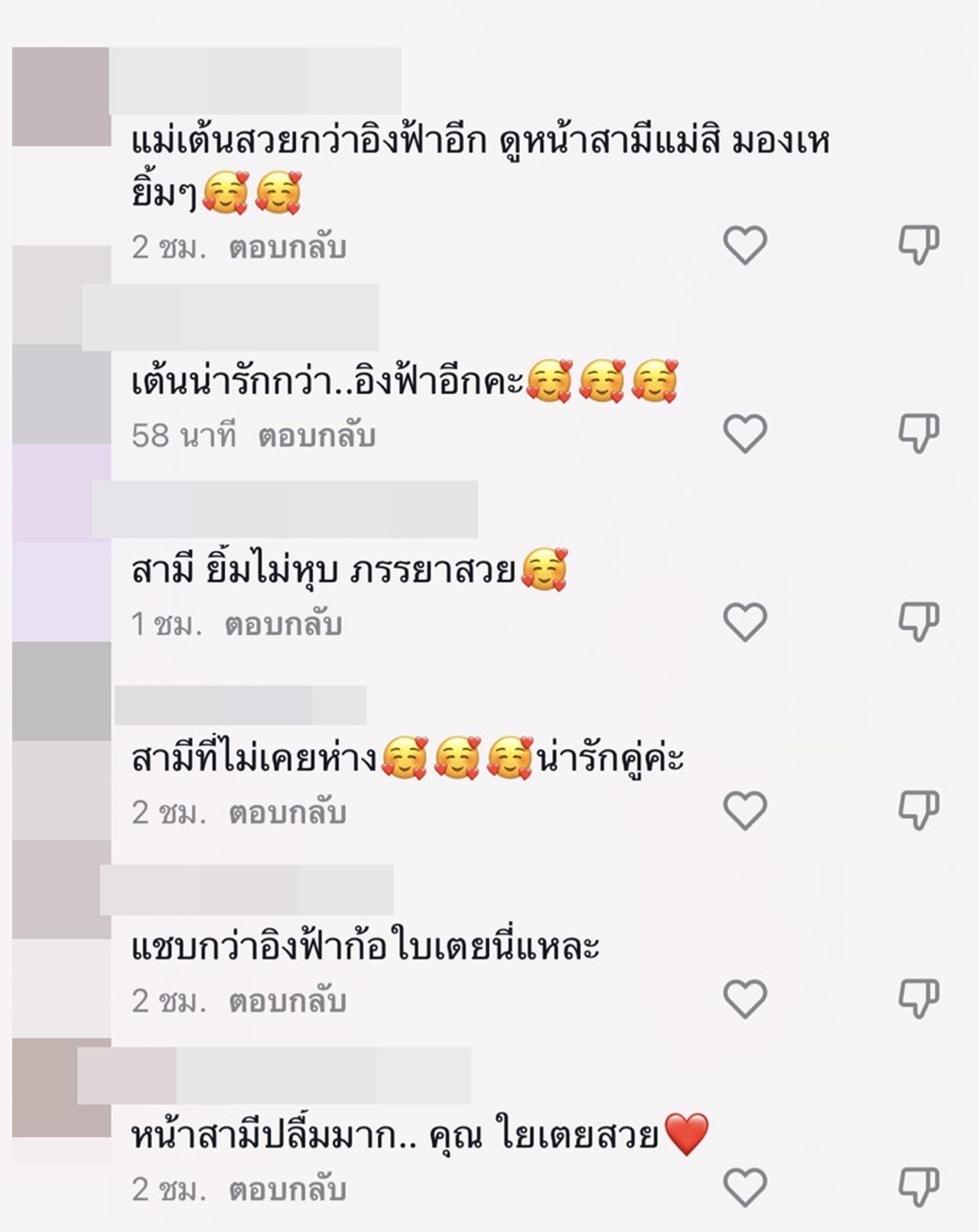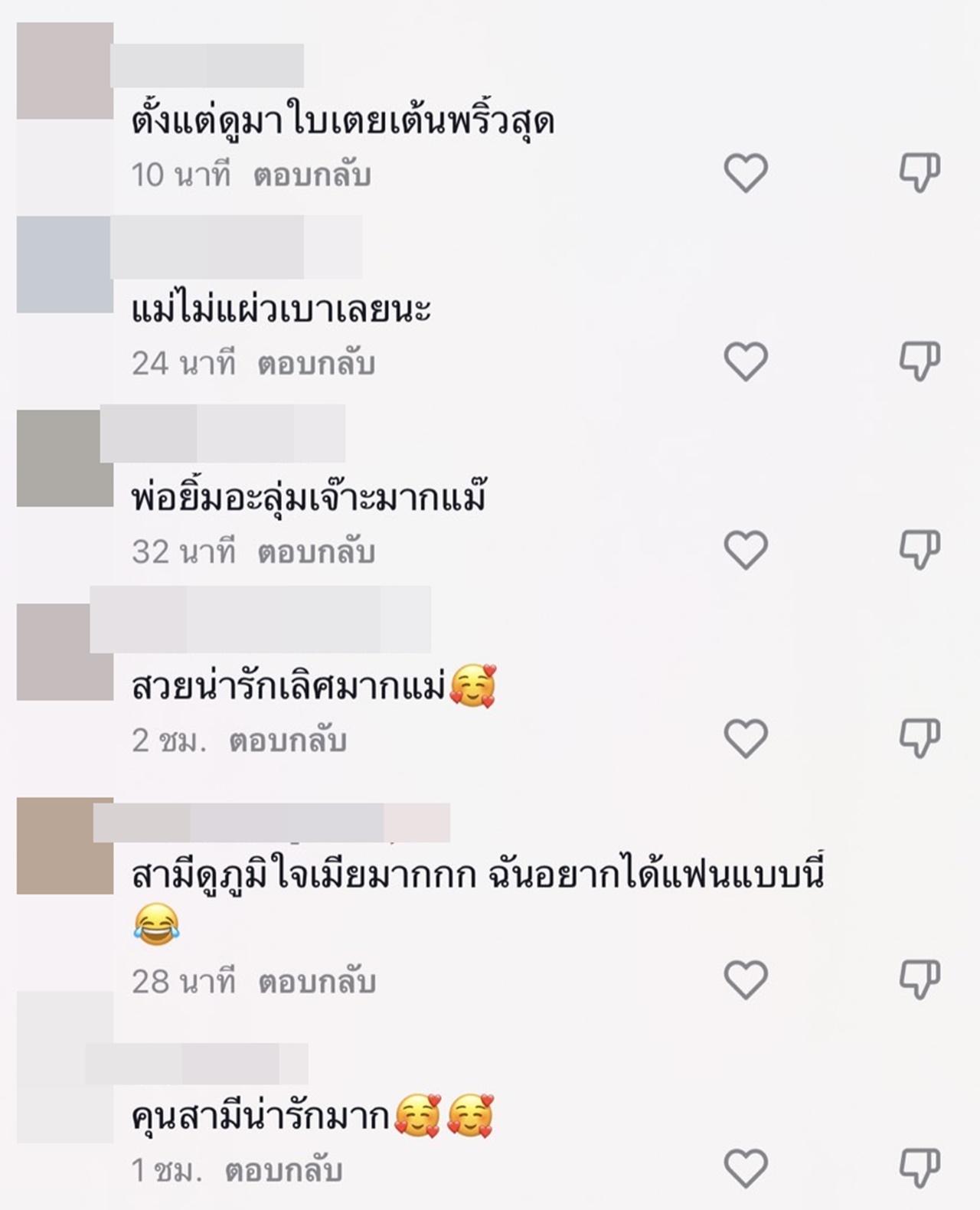 หลังจากที่แฟนๆ ได้ดูคลิปดังกล่าวก็เข้ามาคอมเมนต์แซวและชมกันอย่างมากมาย อาทิ "แม่เต้นสวยกว่าอิงฟ้าอีก ดูหน้าสามีแม่สิ มองยิ้มๆ, แซ่บกว่าอิงฟ้าก็ใบเตยนี่แหละ, เต้นน่ารักกว่า..อิงฟ้าอีกค่ะ, เต้นสวยกว่าต้นฉบับจ้า, ตั้งแต่ดูมาใบเตยเต้นพลิ้วสุด"