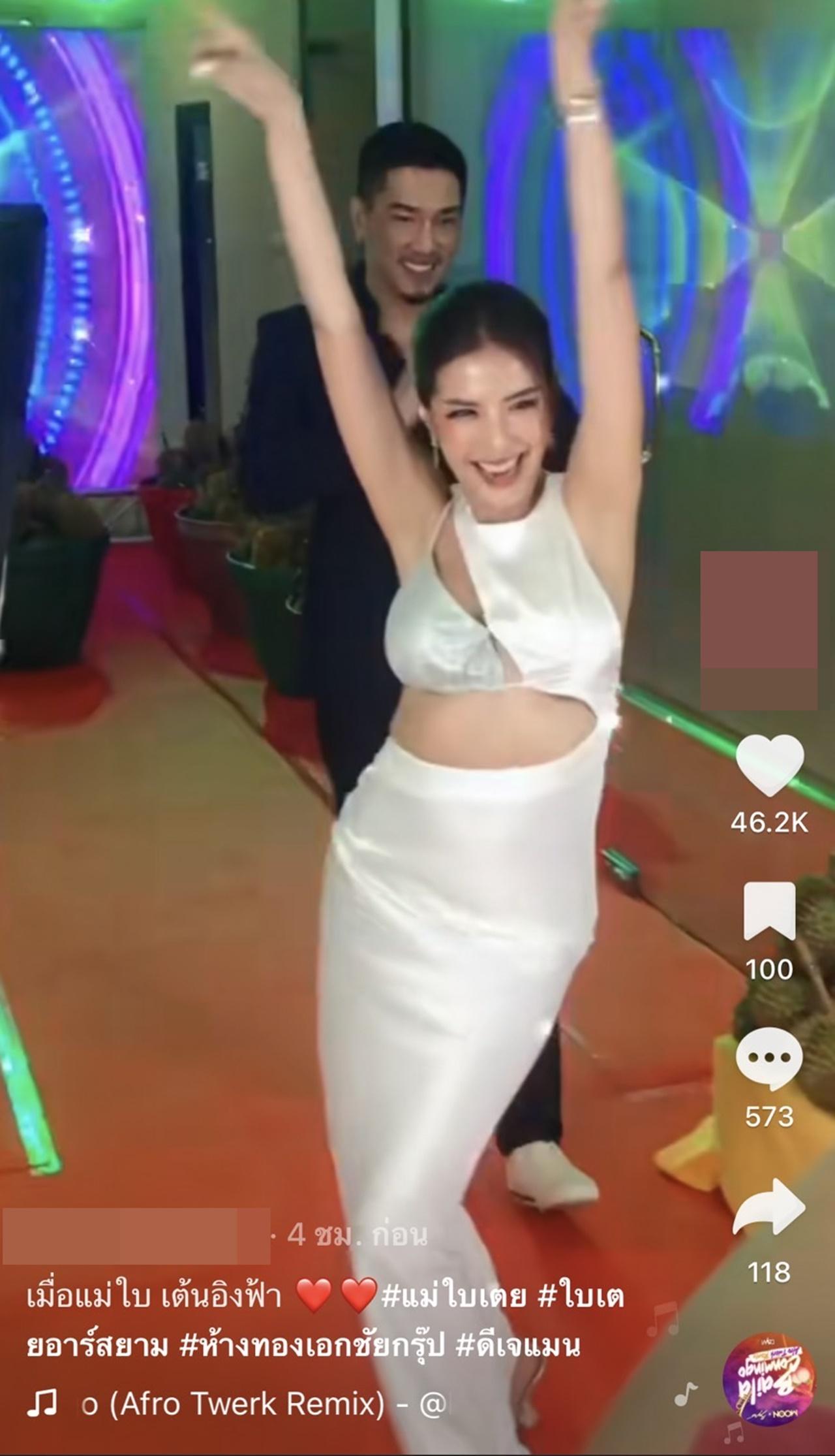โดยมีผู้ใช้ติ๊กต๊อกรายหนึ่งโพสต์คลิปการเต้นของสาวใบเตยลงในโซเชียล พร้อมเขียนแคปชั่นว่า "เมื่อแม่ใบ เต้นอิงฟ้า" ซึ่งในคลิปดังกล่าว ใบเตย โชว์สเตปเต้นได้แซ่บไม่แพ้ต้นฉบับเลยทีเดียว
