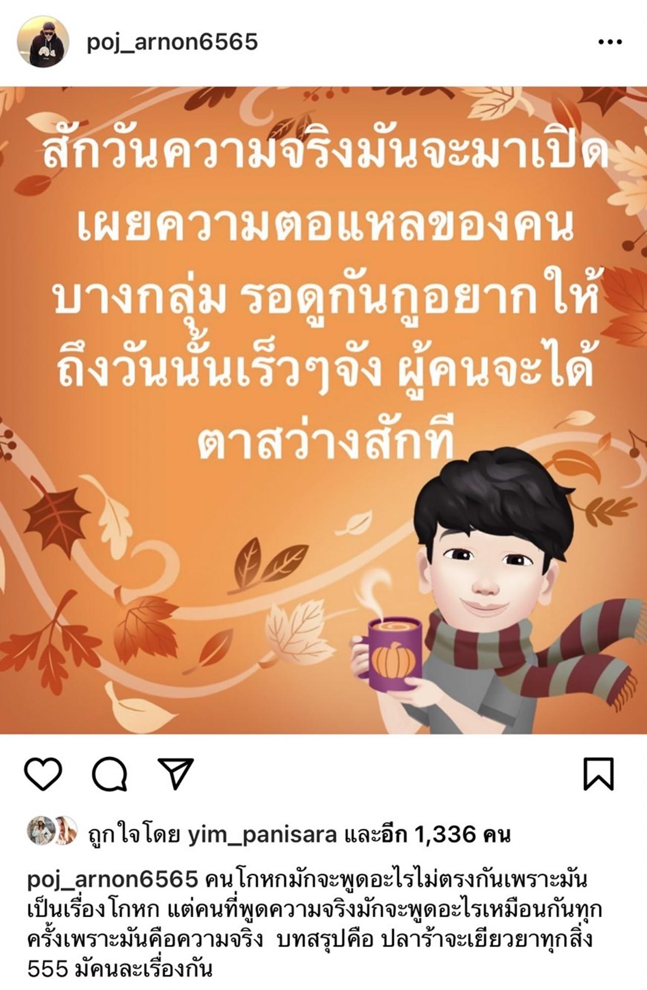 จากนั้นก็ได้โพสต์ข้อความที่ระบุว่า "สักวันความจริงมันจะเปิดเผยความตอแหลของคนบางกลุ่ม รอดูกันกูอยากให้ถึงวันนั้นเร็วๆจัง ผู้คนจะได้ตาสว่างสักที" พร้อมเขียนแคปชั่นต่อว่า "คนโกหกมักจะพูดอะไรไม่ตรงกันเพราะมันเป็นเรื่องโกหก แต่คนที่พูดความจริงมักจะพูดอะไรเหมือนกันทุกครั้งเพราะมันคือความจริง บทสรุปคือ ปลาร้าจะเยียวยาทุกสิ่ง 555 มันคนละเรื่องกัน"