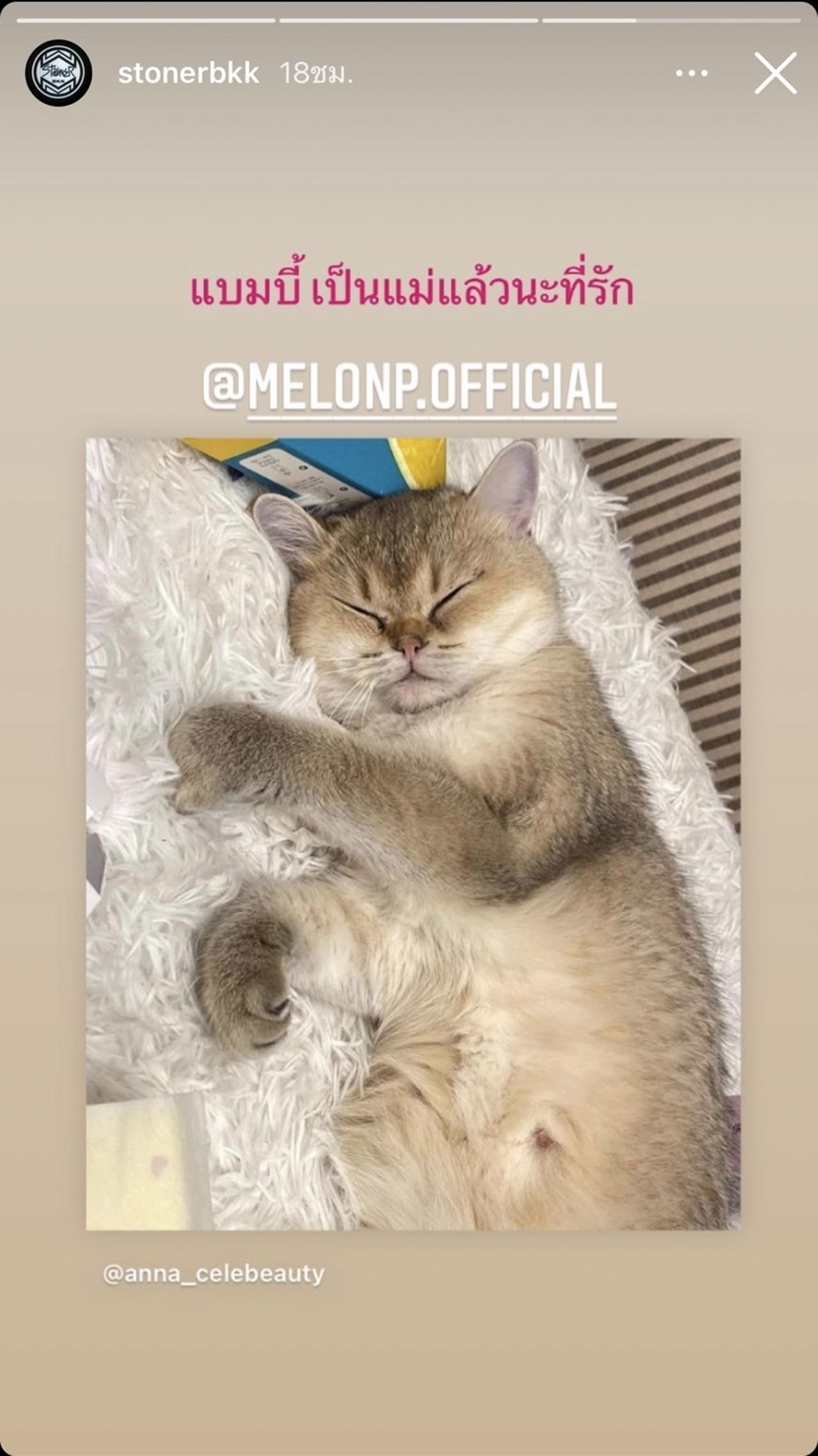 โดยหนุ่มเบิร์ดได้โพสต์ภาพของแบมบี้นอนหลับอยู่ลงในไอจีสตอรี่ของตัวเอง พร้อมกับเขียนข้อความเอาไว้ว่า "แบมบี้ เป็นแม่แล้วนะที่รัก" และแท็กไอจีแฟนสาว @melonp.official อีกด้วย