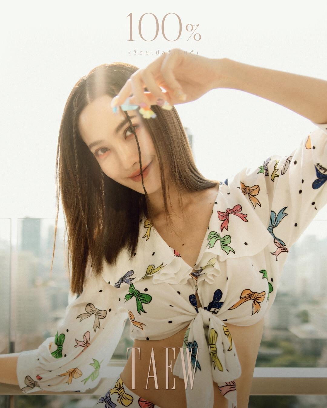 ”ฝากด้วยนะคะกับงานเพลงที่ 2 “100 เปอร์เซ็นต์” เราทำแบบ 100 เปอร์เซ็นต์จริงๆ มันเป็นเพลงที่เป็นตัวแต้วมากๆ (เสียงสูง) แล้วแต้วก็ชอบมากๆ หวังว่าทุกคนจะชอบเหมือนกันค่ะ เป็นกำลังใจและไปดูกันเยอะๆ นะคะ ในยูทูบแชนแนล Ch3Thailand Music นะคะ และในสตรีมมิงทั้งหมดเลย JOOX, Spotify และฝากผลงานละครด้วยนะคะ กำลังจะมีเร็วๆ นี้ค่ะ”.