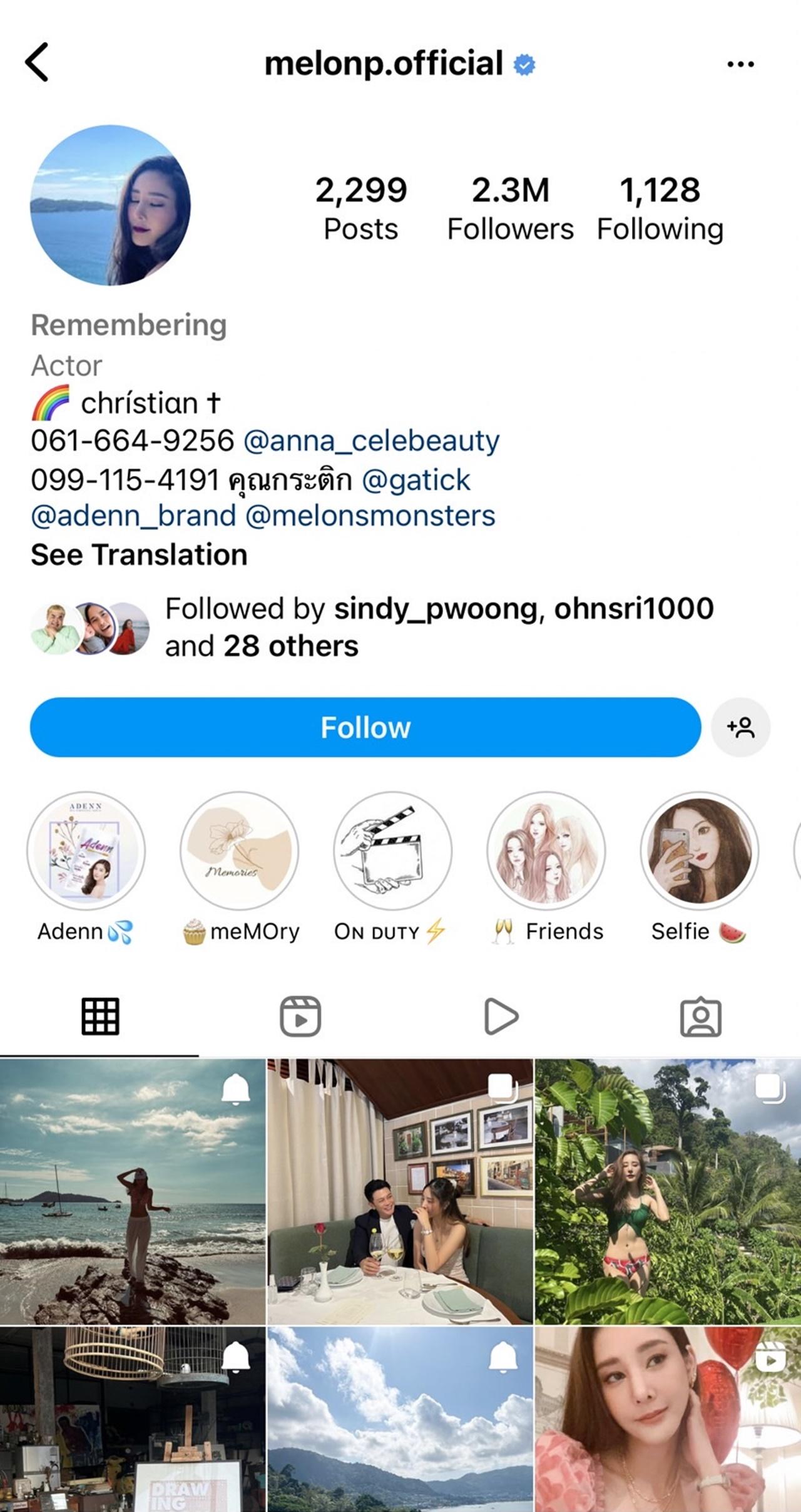 และในอินสตาแกรมส่วนตัวของ แตงโม นิดา ที่ใช้ชื่อว่า melonp.official ที่แม้เธอจะจากไปแล้ว แต่กลับมียอดผู้ติดตามเพิ่มขึ้นถึง 2.3 ล้านคนแล้ว
