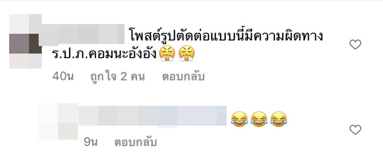 แต่ก็มีแฟนคลับของสาวแพทตี้บางคนคอมเมนต์แซวขำๆ เมื่อได้เห็นภาพสุดหวานนี้ว่า "โพสต์รูปตัดต่อแบบนี้มีความผิดทาง ร.ป.ภ.คอมนะอังอัง, กดโกรธยังไง, ทำไมแพทตี้ต้องกอดคนสวน"
