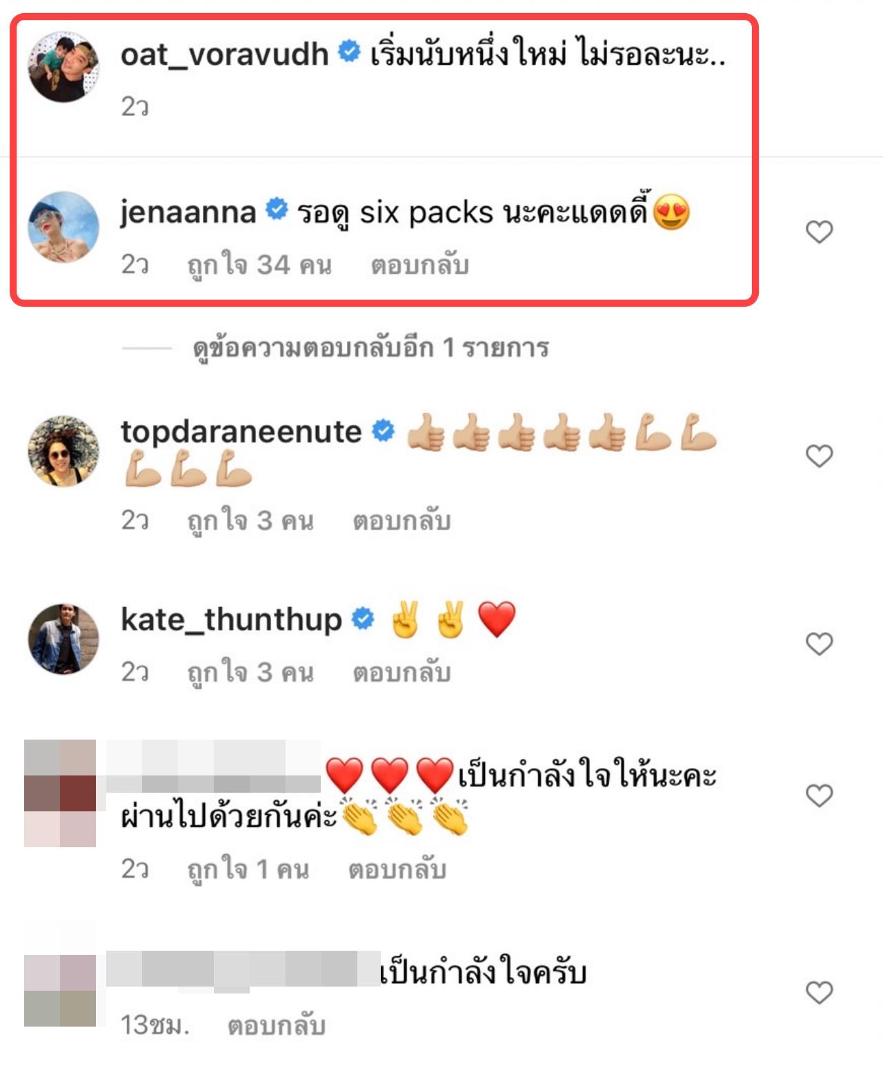 ล่าสุด โอ๊ต ได้โพสต์ภาพตัวเอง พร้อมเขียนแคปชั่นว่า "เริ่มนับหนึ่งใหม่ ไม่รอละนะ.." ซึ่ง จีน่า ก็ได้เข้ามาคอมเมนต์ด้วย เขียนว่า "รอดู six packs นะคะแดดดี๊" ด้านเพื่อนในวงการบันเทิง รวมไปถึงแฟนคลับที่ติดตามต่างก็ได้เข้ามาคอมเมนต์กันเป็นจำนวนมาก พร้อมกับให้กำลังใจ และเชียร์ให้ทั้งคู่กลับมารักกันเหมือนเดิม.